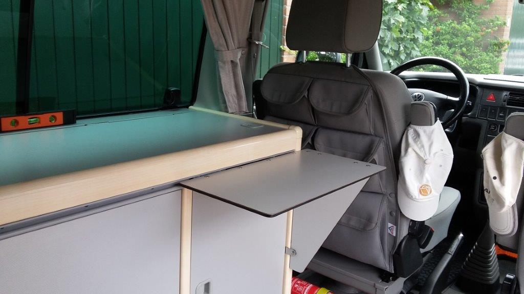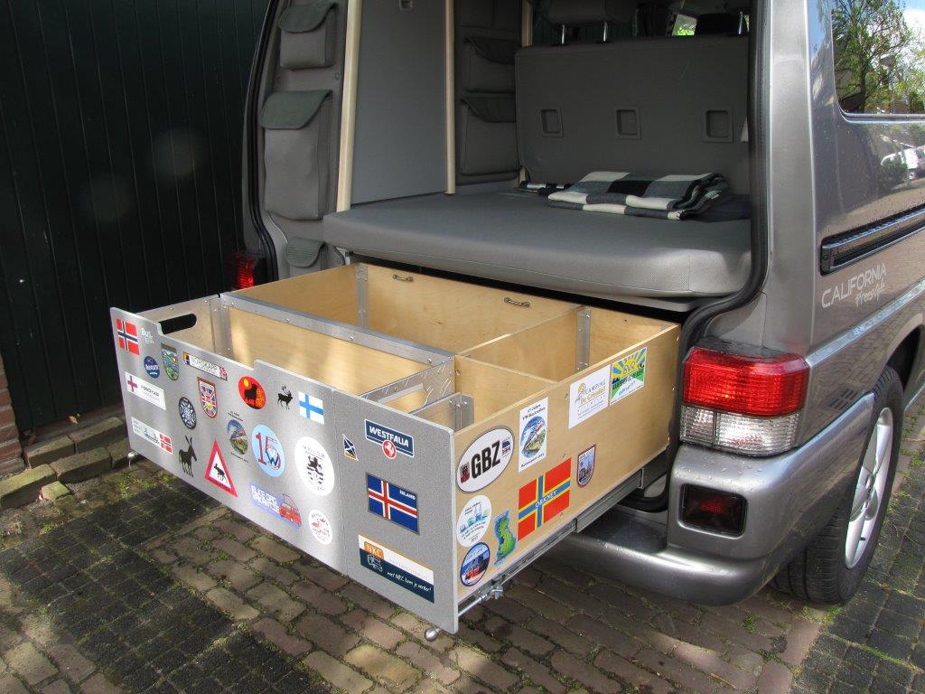 Leuke topic! Wij zijn in de t4 californa (92) van mijn ouders getrokken en hebben het geluk gehad dat zij er veel handige dingen in hebben aangepast. Daardoor hebben wij nu best wat ruimte. Het hefdak hebben ze laten vervangen door een hoog dak, daardoor heb ik twee zoldertjes en 2 kleine kastjes boven het keukenblok.