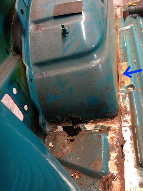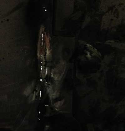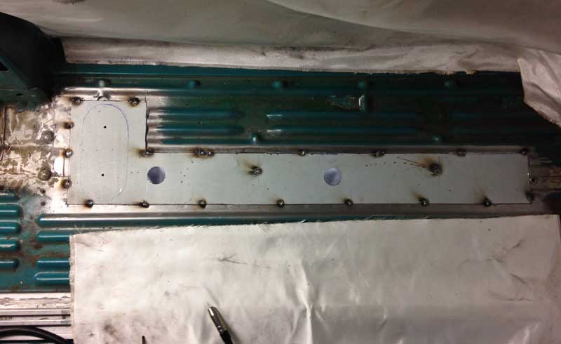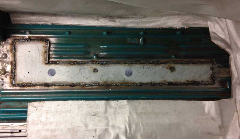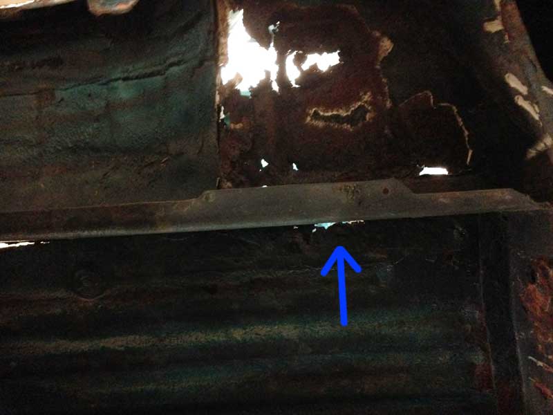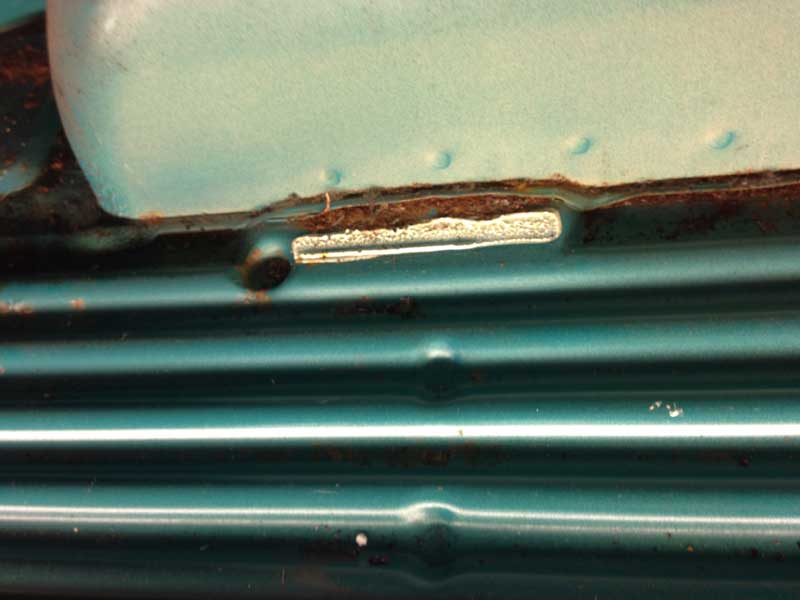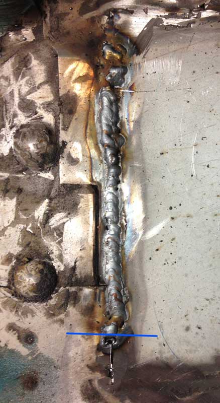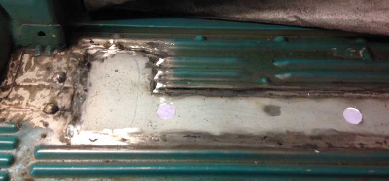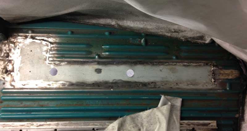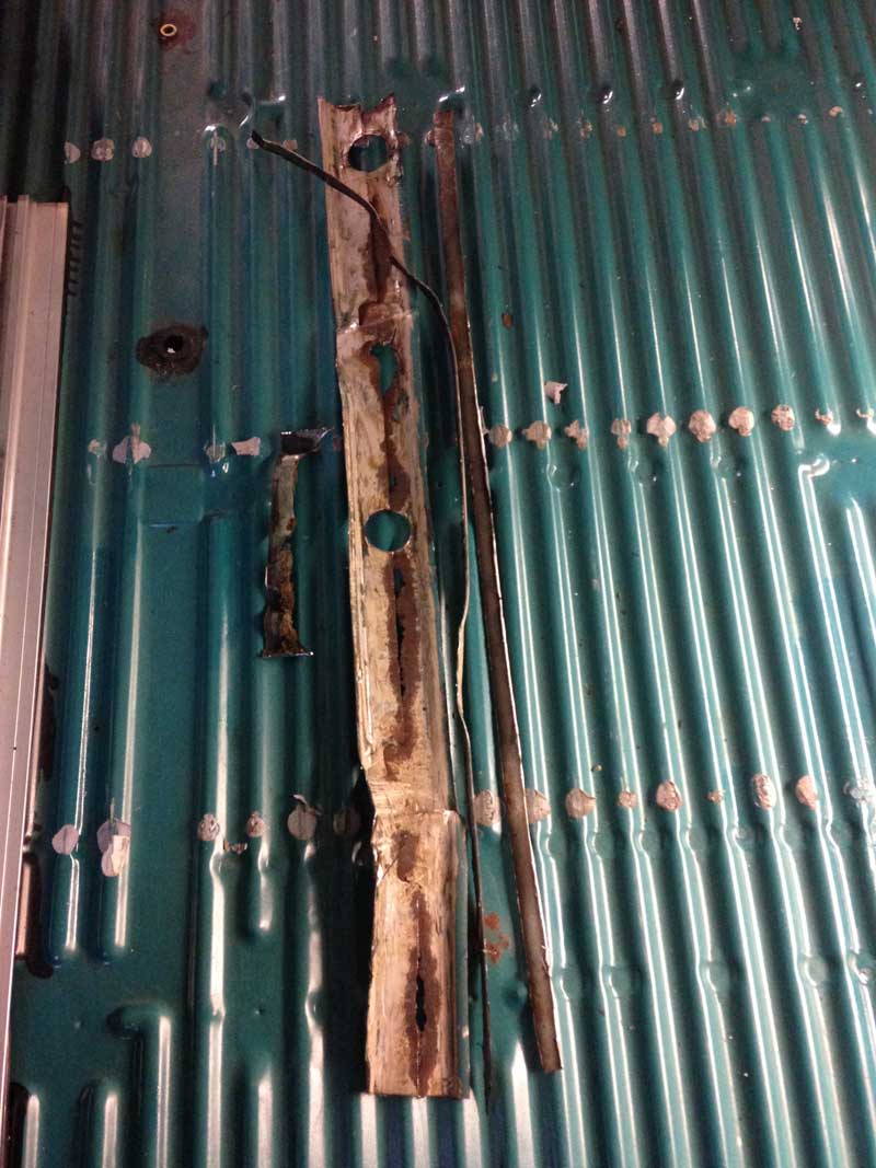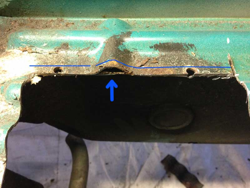 Ik ga nog een klein strookje extra wegslijpen zodat het nieuwe deel op de flens (pijltje) van de dorpel kan rusten.