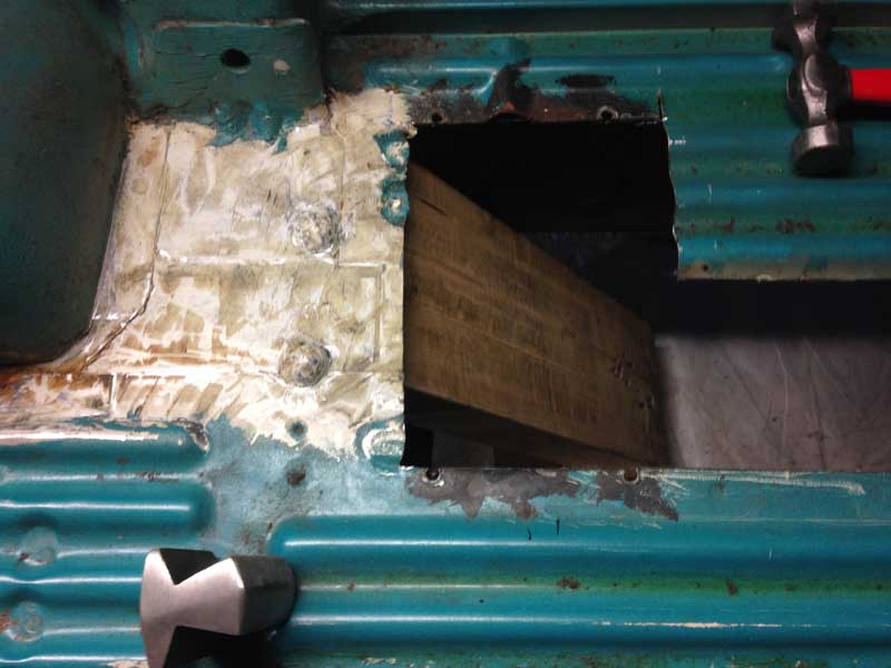 Ik heb het rotte deel er eerst grof uitgeslepen, daarna het gat strookje voor strookje groter gemaakt.