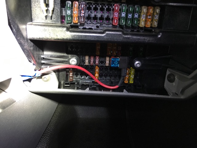 Mijn broer had zelfs het geluk dat de kabelboom voor de voor bumper al helemaal voor bereid was. Alleen de pieper en knopje ontbraken nog.