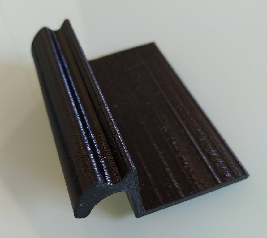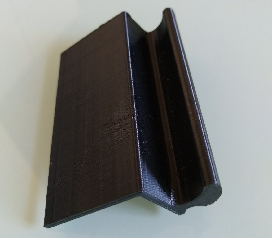 Vandaag mijn geprinte profiel ontvangen van Chris. Ziet er goed uit en past prima in de rail. Het materiaal voelt best stevig aan maar ik denk dat ik het nog wel verstevig door er een aluminium hoekprofiel in te lijmen. Ik zal te zijner tijd nog laten zien hoe ik het tafeltje gemaakt heb maar de komende weken kom ik daar helaas nog niet aan toe.