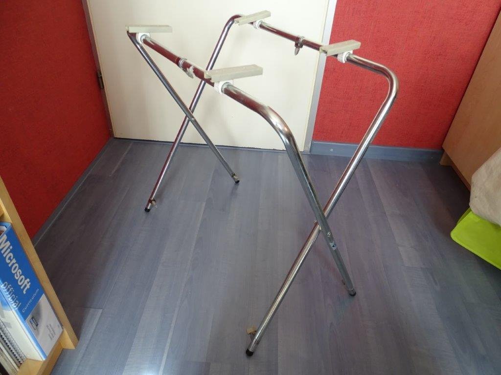 Zo kan de tafel ook buiten (zelfstandig) gebruikt worden, zie bijgaande foto's van het onderstel