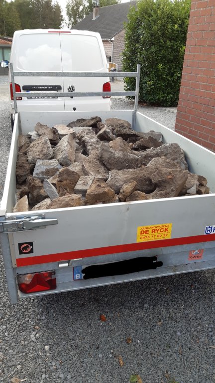 Aanhanger geladen met dakplaten voor een nieuwe overkapping Geladen met mijn kleine traktor , om een dagje in het bos te gaan werken En een aanhangertje betonpuin wegvoeren