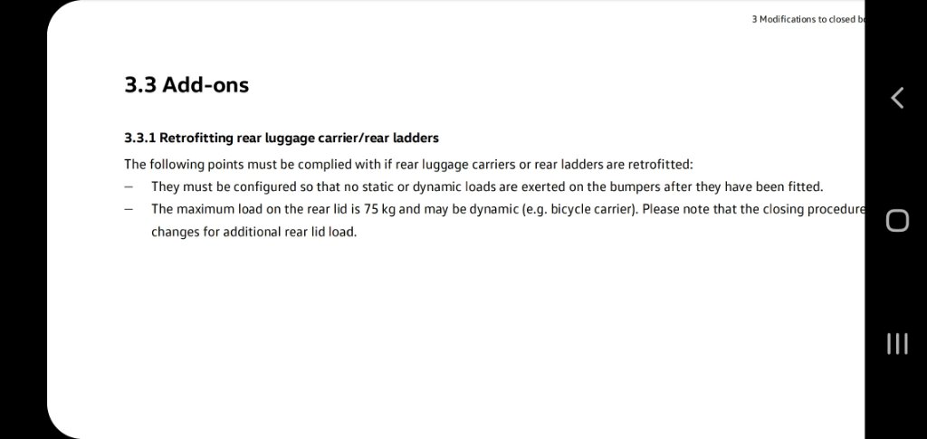 Bijzonder dat de ANWB op de website vermeld dat de Touring Flex 2 en 3 niet geschikt is voor campers of busjes. Zal wellicht te maken hebben dat het kantelsysteem niet voldoende is om de deuren/klep te openen. Mag je die drager dan wel gebruiken als de ANWB zegt dat die niet geschikt is voor je buscamper. (jawel je bent dubbel fout, met de bus en als camper!) Volgens mij staat in de handleiding enkel uitzonderingen van type trekhaken waarop de drager niet gemonteerd mag worden. Geen uitsluitingen van voertuigen/merk/type.de Viking schreef: 08 dec 2022, 19:39