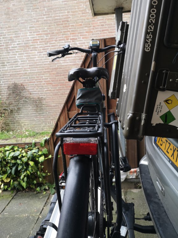 En ook nog volledig kantelbaar die van de ANWB voor de laagste prijs! en geschikt voor mijn elektrische fietsen (zonder accu, die gaat naar binnen)