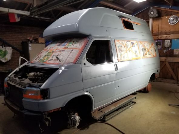 Daarna heb ik eerst de bovenkant gespoten, dit is een originele kleur van een VW T1