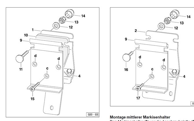 Ik heb onze F45s luifel spanningvrij op de multirail gemonteerd door vulstukjes tussen de voorste en achterste steun te plaatsen.