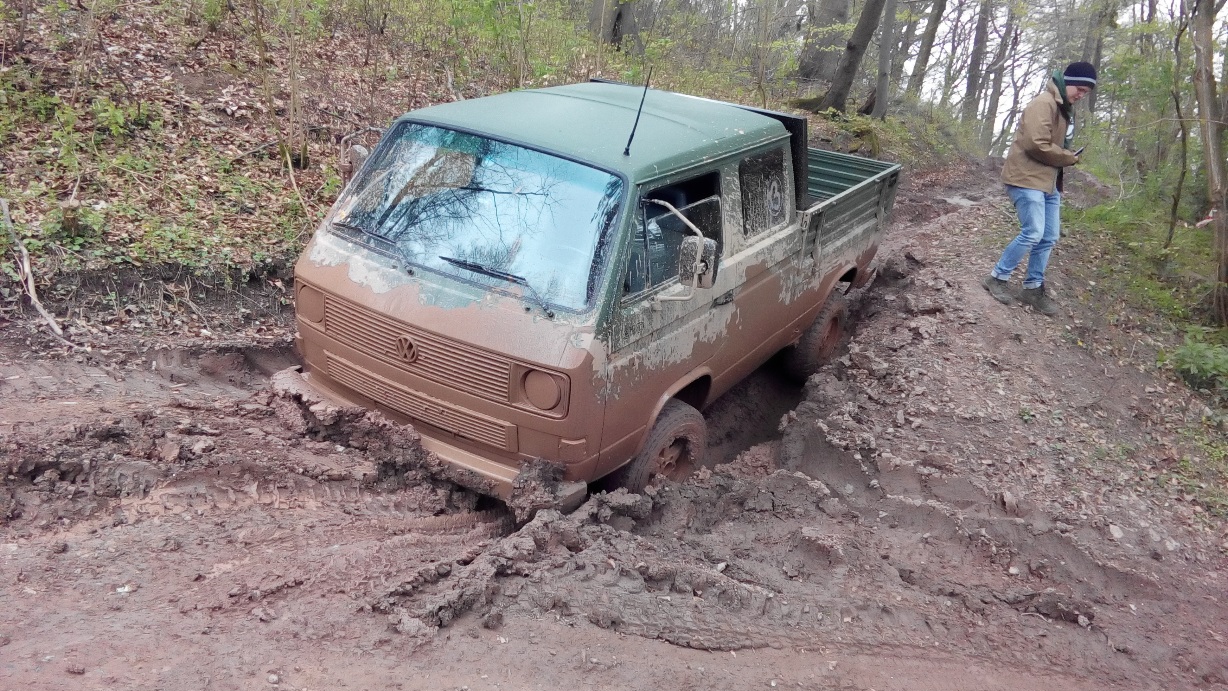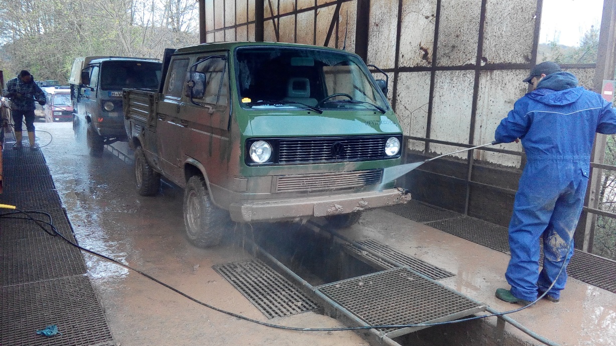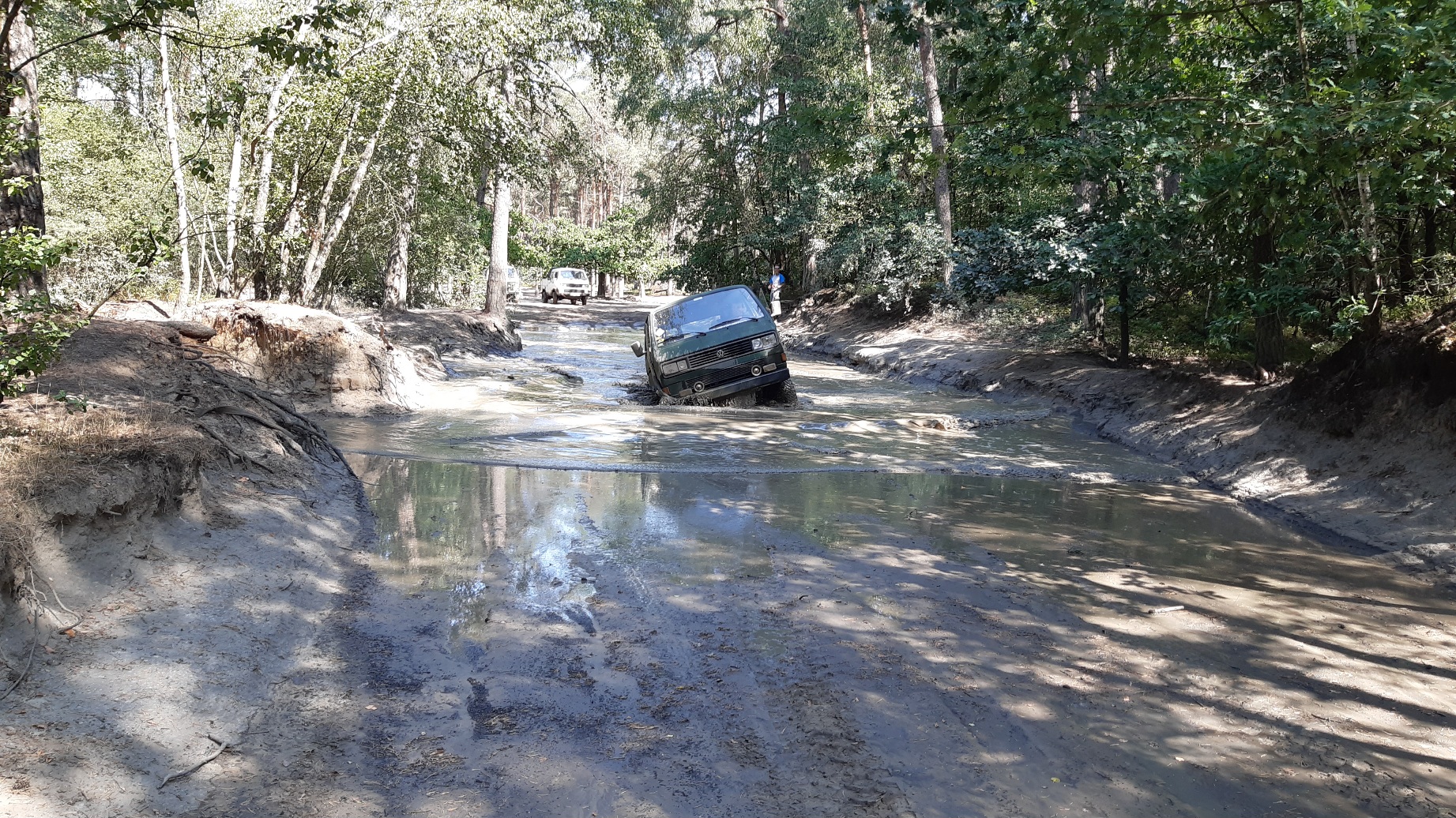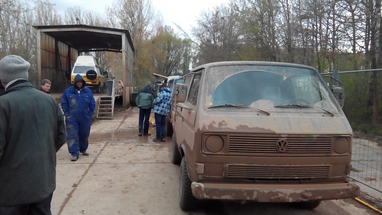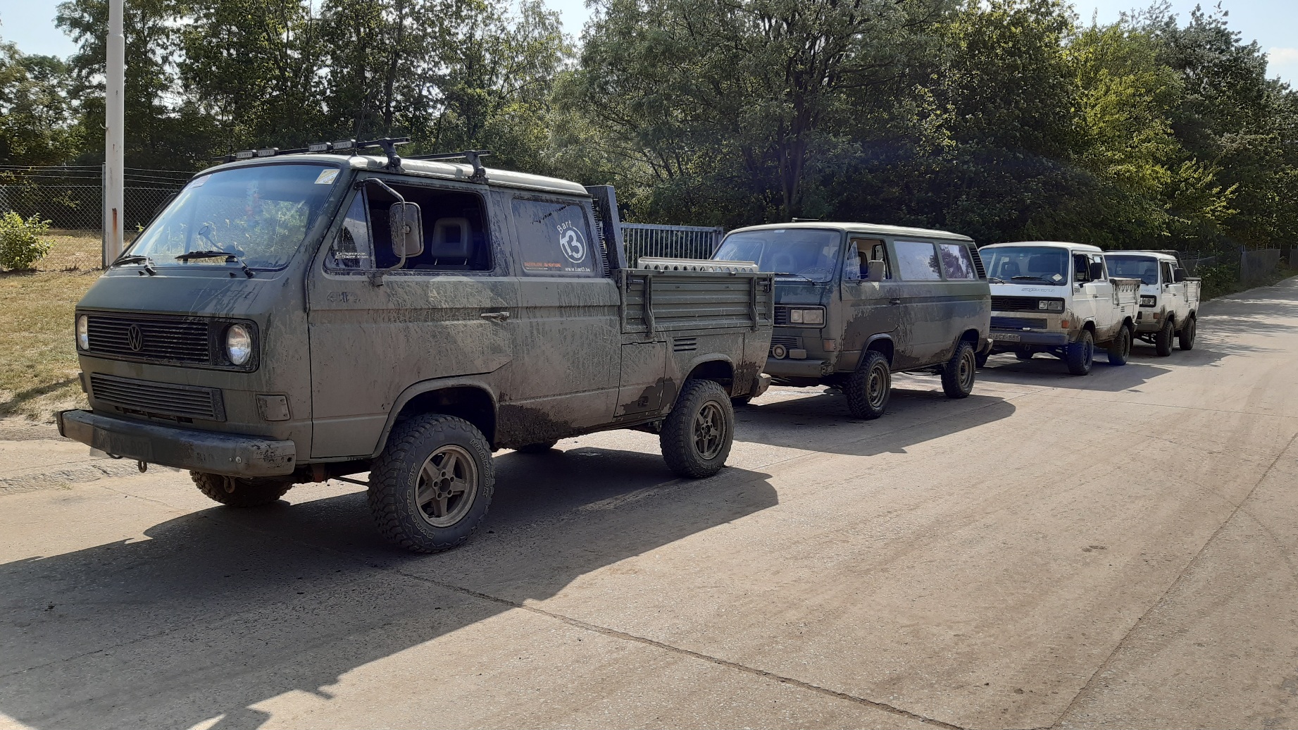 Deze T3 Syncro hadden we ook snel klaargemaakt om mee te nemen naar Fursten Forest . Afgeschuurd , gelakt in kaki , mechanisch in orde gemaakt , luchtfilter naar binnen gebracht en onder het dak bevestigd (voor de diepe water doorwadingen) , en ook zelf een bodembeschermplaat/frame gemaakt En ik heb met mijn Syncro daar ook een Unimog losgetrokken die goed vastgereden was