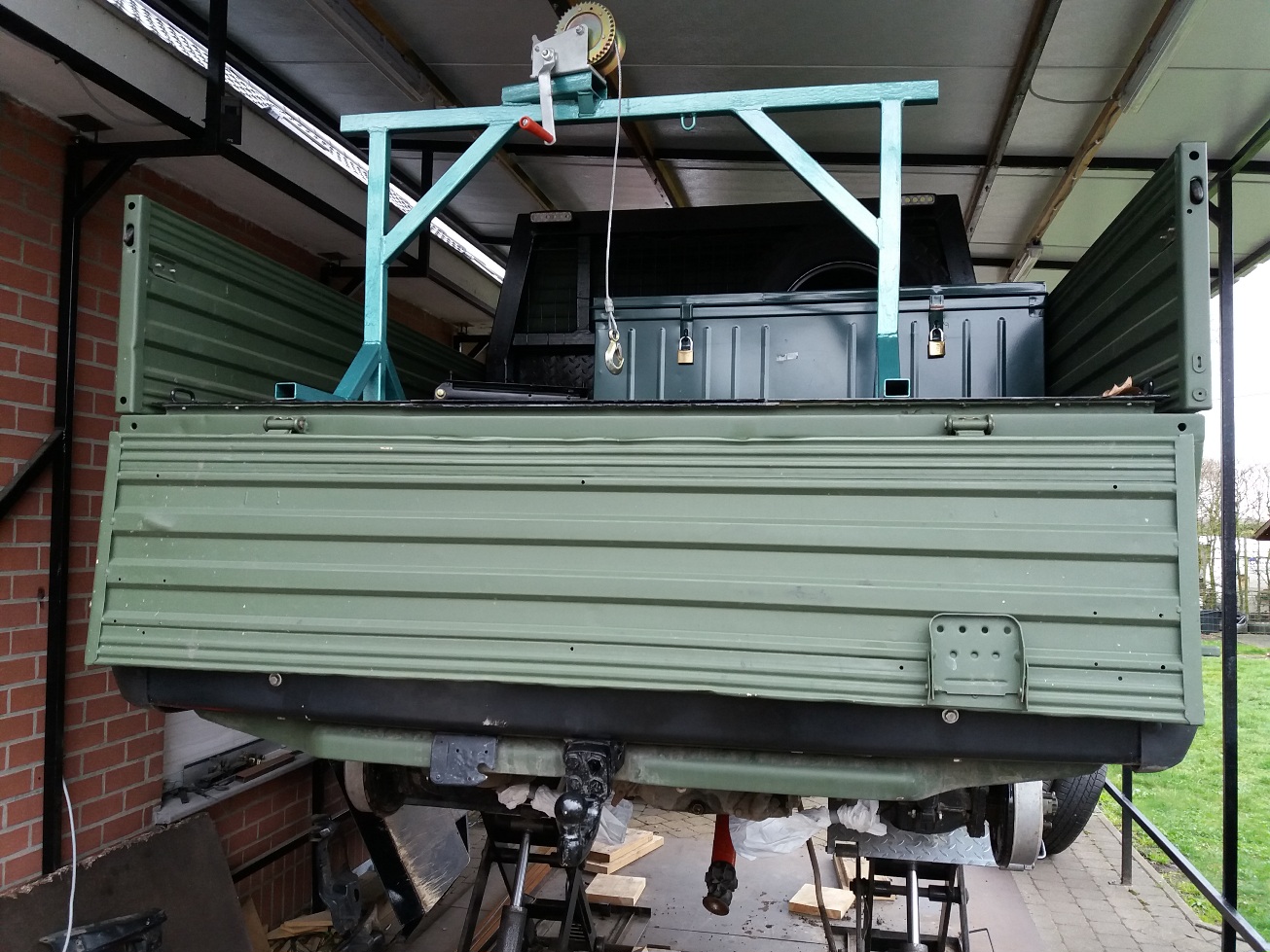 En om de versnellingsbak er onderuit te halen , had ik snel een katrolsysteem gemaakt