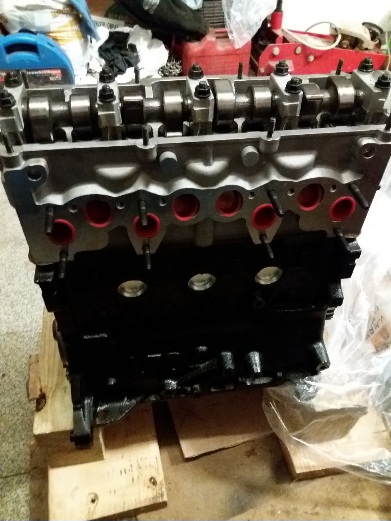 Verder werd het blok dus opgeboord , en voorzien van overmaat zuigers , krukas, lagers, oliepomp enz. nieuw . Een nieuwe cilinderkop , nokkenas , kleppen enz. Ik heb deze nieuwe motor dan verder opgebouwd met nieuwe waterpomp , nieuwe turbo , nieuwe starter , gereviseerde alternator , nieuwe oliekoeler , nieuwe verstuivers en nieuwe distributie . En meteen ook een nieuwe inspuitpomp gemonteerd.