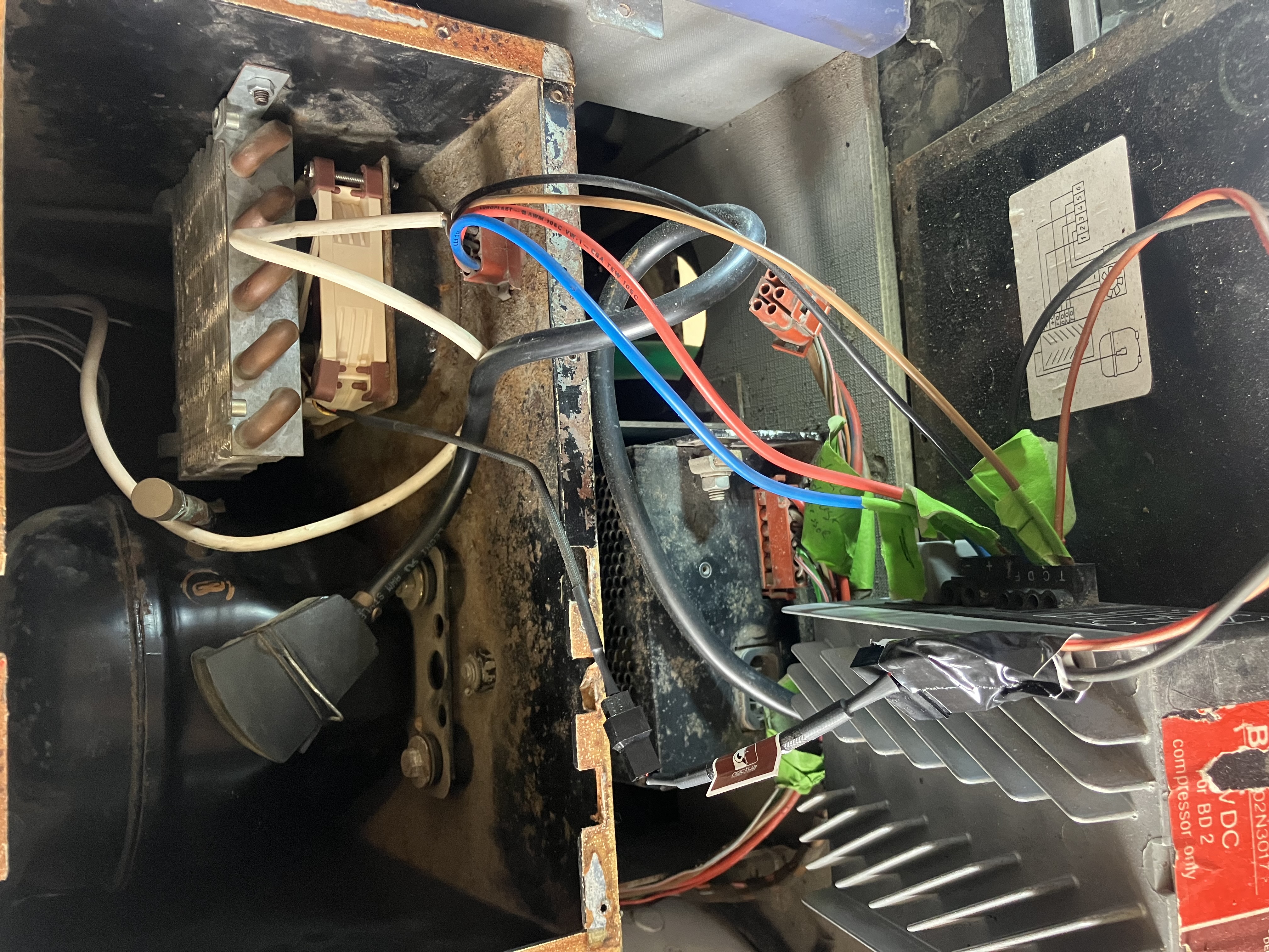Al snel bleek een massa kabel nog niet aangesloten, die erop, en toen deed ie t! Best bijzonder na jaren deze bus te hebben dat de koelkast t eindelijk doet :)