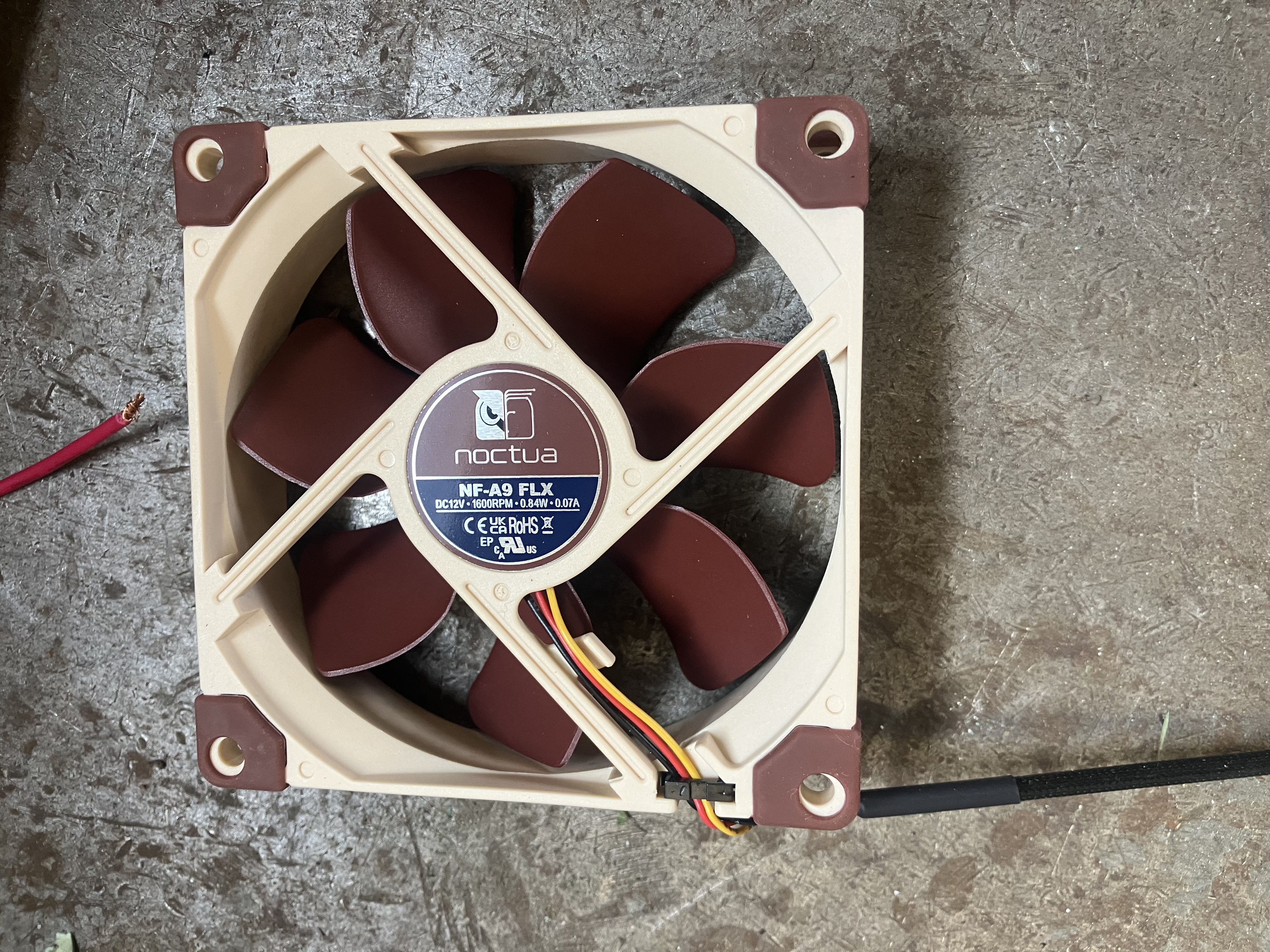 Bleek alleen dat de ventilator t niet deed. Via wat forum draadjes, hulp van HenkK en Peter multivan generation uiteindelijk een noctua NF A9 besteld, stille fan op 12V. Ook meteen stukje G1 filterdoek besteld wat op de ingang onderop kan.