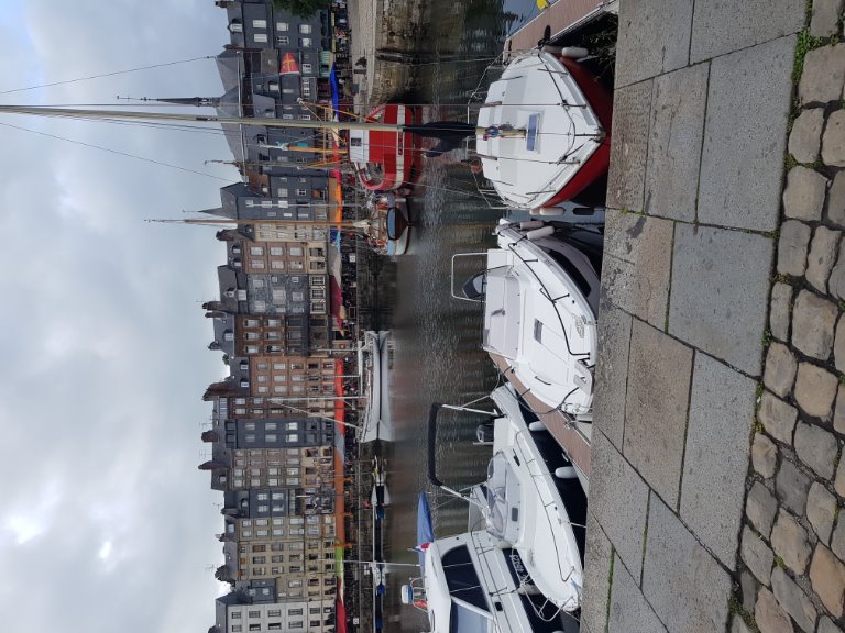 Intussen lekker op weg, voornamelijk via de opschiet routes. Gisteren naar Honfleur gereden, heel leuk plaatsje en gelukkig was het toen ik aankwam 2 uur droog zodat ik even rond kon kijken.