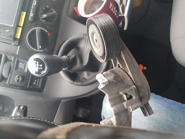 Beetje pech, op de terug reis vanmiddag op de tolweg bij Blois in Frankrijk ging ineens het accu lampje branden en deed de stuurbekrachtiging het niet meer. Vlak bij een pompstation gelukkig dus even door gereden. Ik denk multiriem gebroken, raar, is 14000 km geleden vernieuwd.
