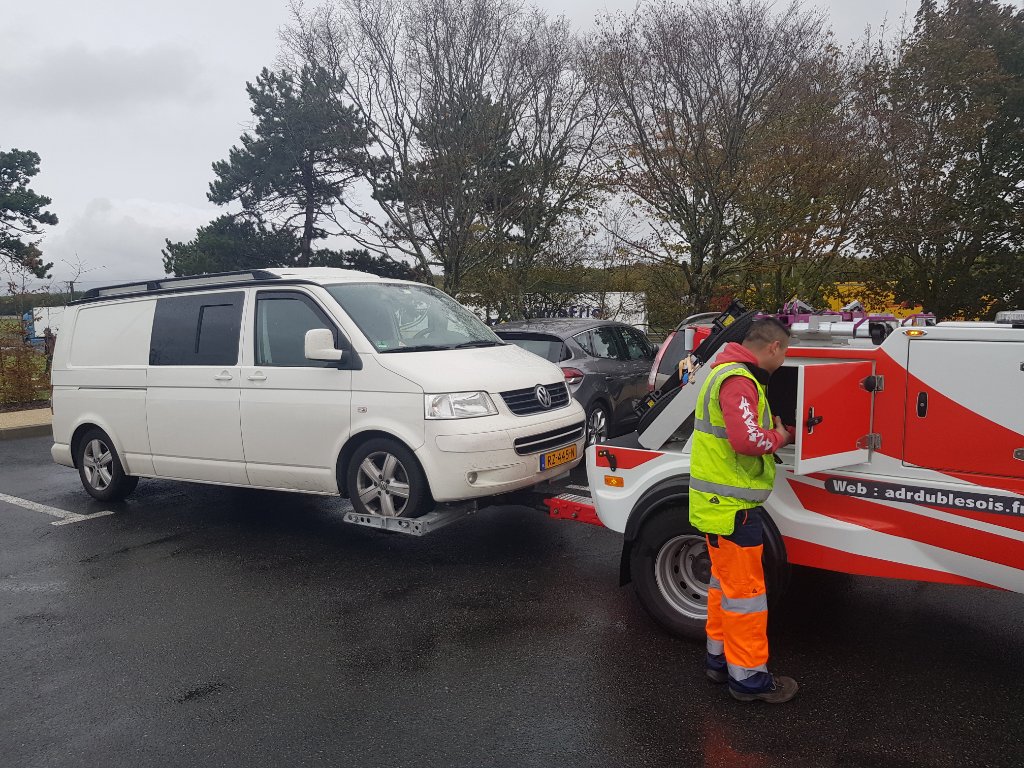 Even overleg onderling en met de ANWB, een helder licht daar stelt voor om, op hun kosten, een stel accu's te kopen en zonder dynamo en stuurbekrachtiging naar huis te rijden. Even over gedacht en omdat ik gisteravond de bus al aan het stopcontact had gehangen om alles goed te laden dit gedaan. De start- en de huishoudaccu parallel gekoppeld op de accuscheider en gaan. Onderweg een paar keer het voltage gemeten zodat dit niet te laag zou worden en pas net over de Nederlandse grens op 11,8 volt de startaccu gewisseld voor één van de gekochte en de huishoudaccu los gekoppeld. Zo net voor donker thuis gekomen. Geluk hadden we wel met het weer, nauwelijks regen en daardoor geen extra stroomverbruik voor de wissers en verlichting.