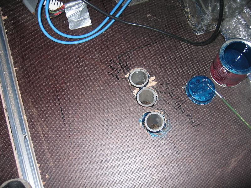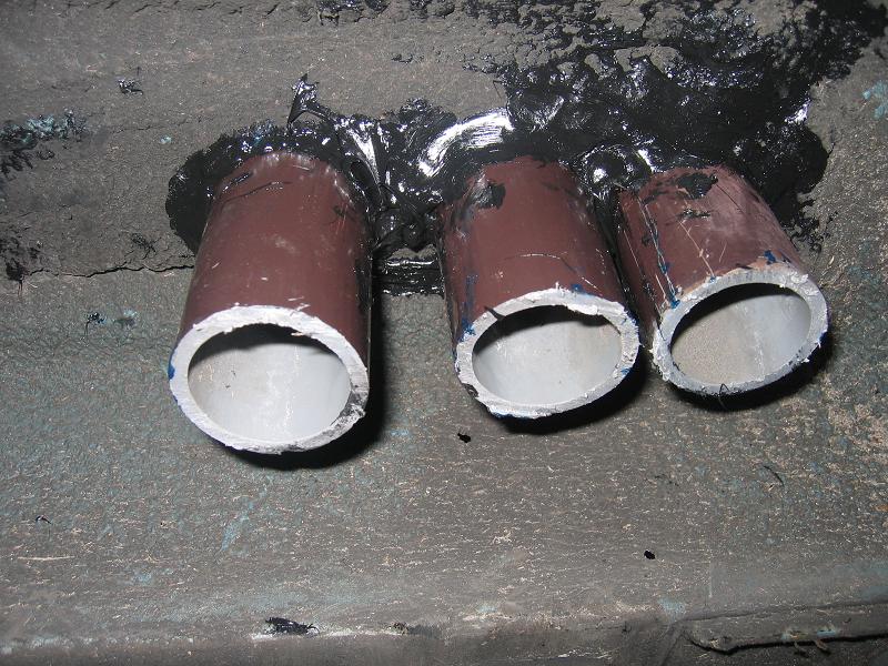Was ik nog vergeten (maar stonden op een andere harde schijf van de pc) de doorvoer leidingen van de afvoerslang afval water , aanvoer verslucht voor de koelkast en overloop van vuiwatertank,Gewoon pvc pijp en afgedicht en roestvrij behandeld met hammerite....en ook weer muggehor in de pijp tegen die steek muggies vooral in de finmark vida in noorwegen ,bij de T3 kwamen ze s'nachts (was daar overdags door de luchtinlaat naar binnen...)toen vlug naar de kust gereden en geen muggie meer daar bij zee
