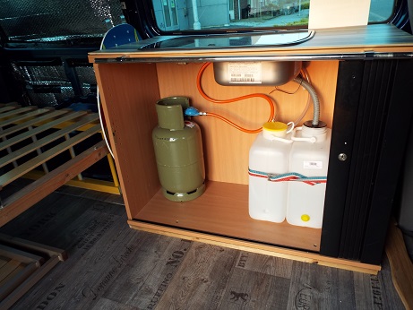 De 12 V bedrading had ik meteen al voor het keukenblok er in ging, gelegd, dus alleen even aan sluiten