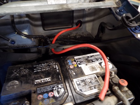 We beginnen met een 25 mm2 pluskabel vanaf de startaccu door het schutbord door te voeren naar de bijrijders zitplaats.