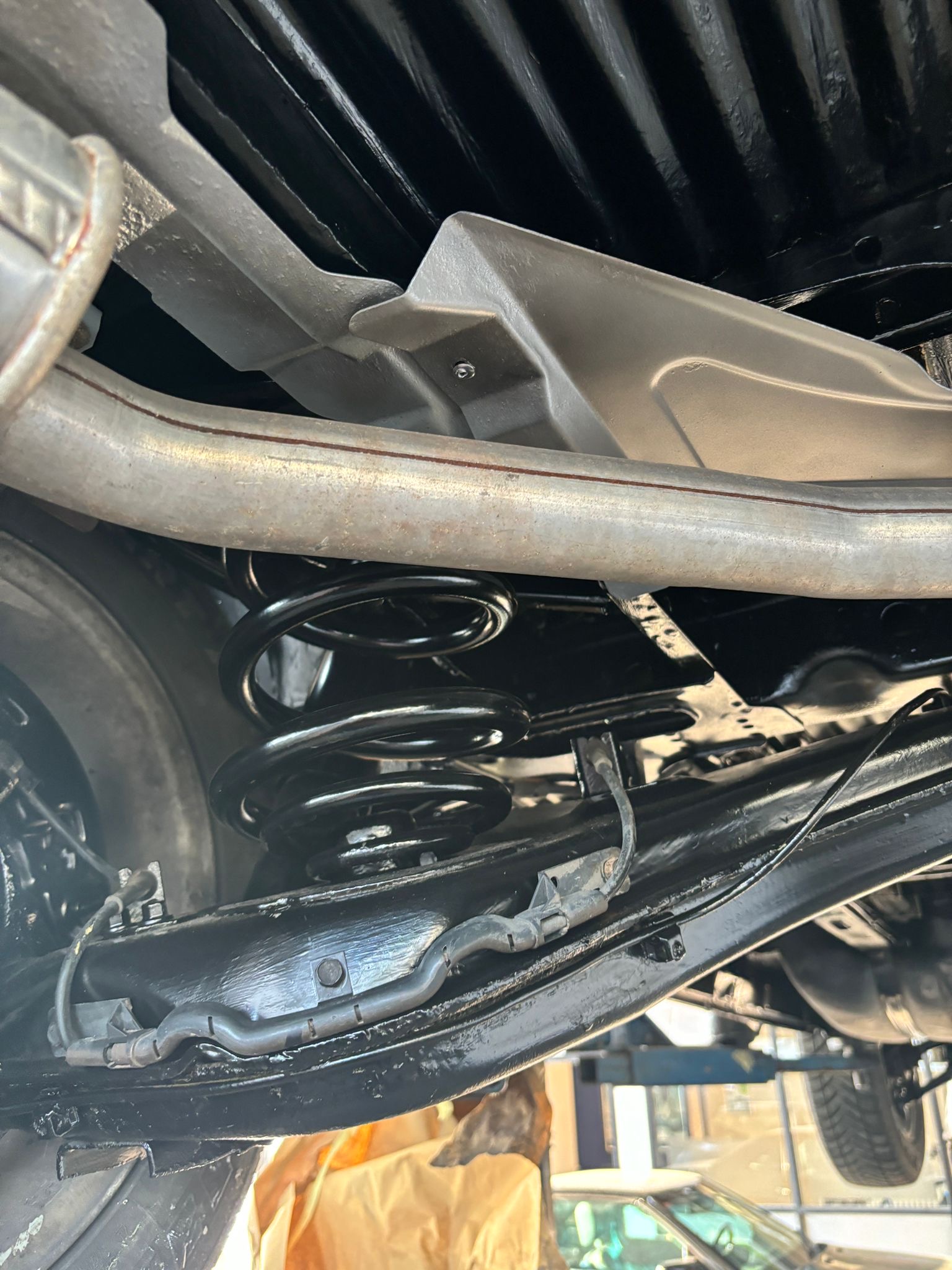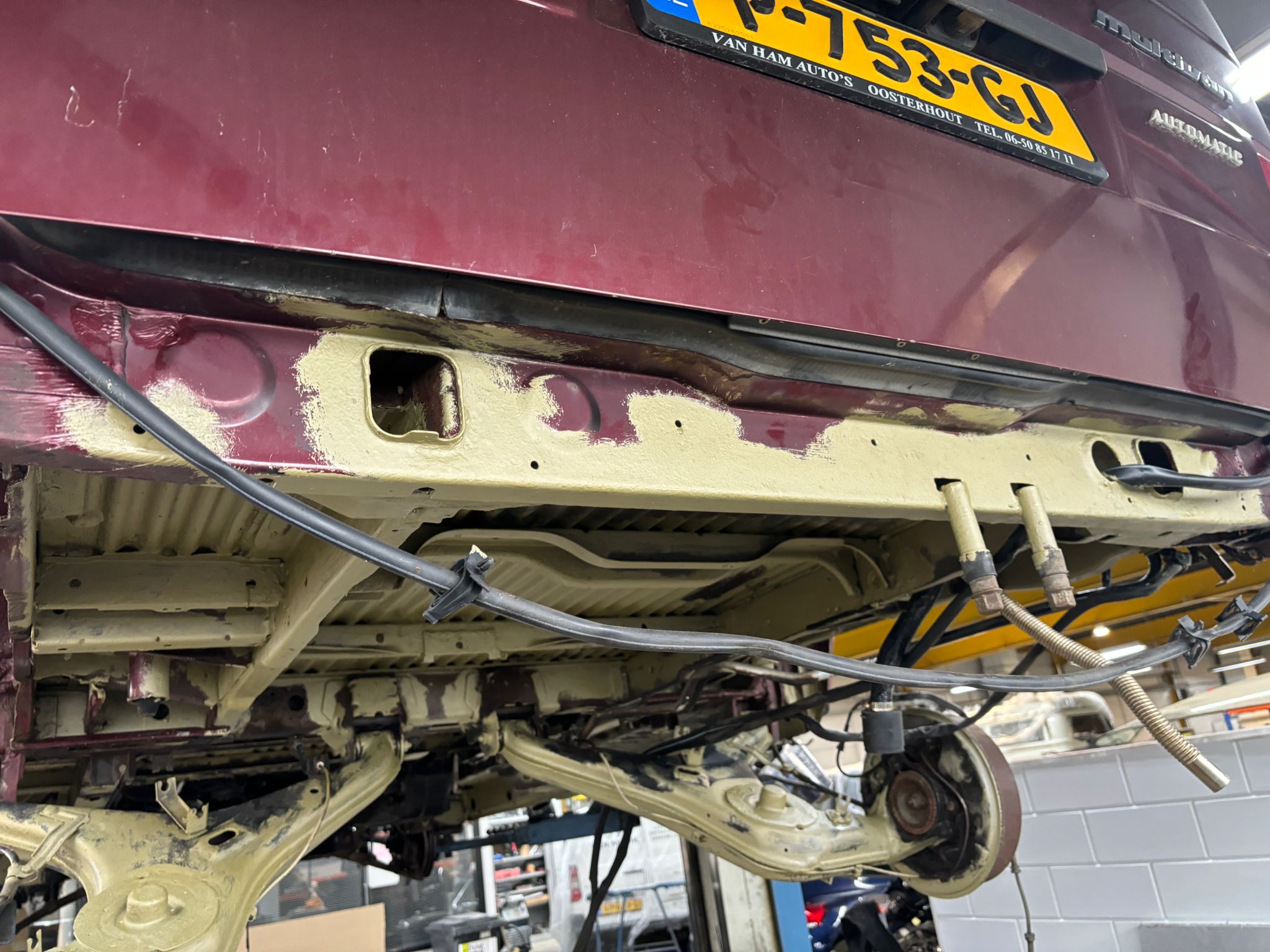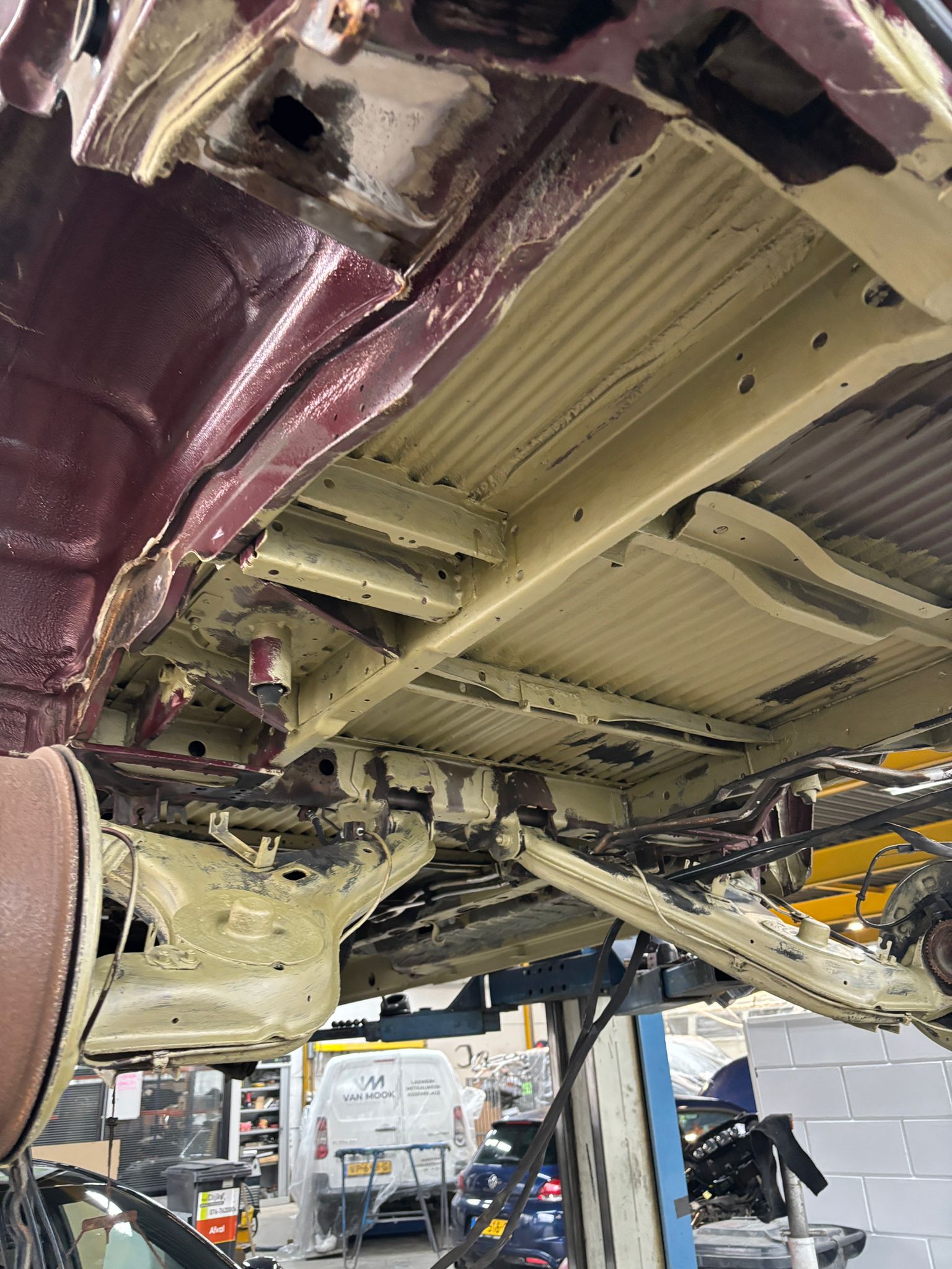 Ik heb heel de bodem laten doen, wat laswerk, hem helemaal laten overspuiten, roest aan het achterraam laten wegwerken. En het zonnescherm zwart laten spuiten.
