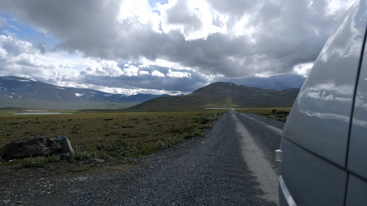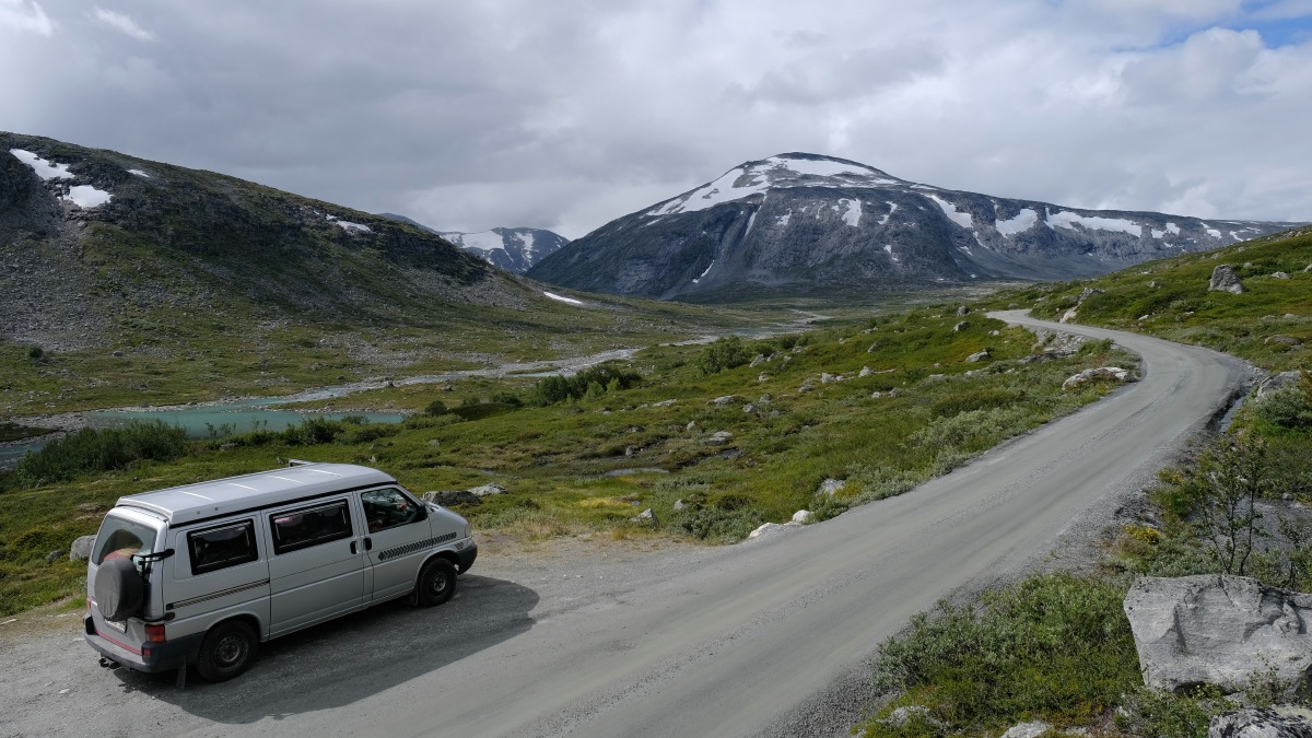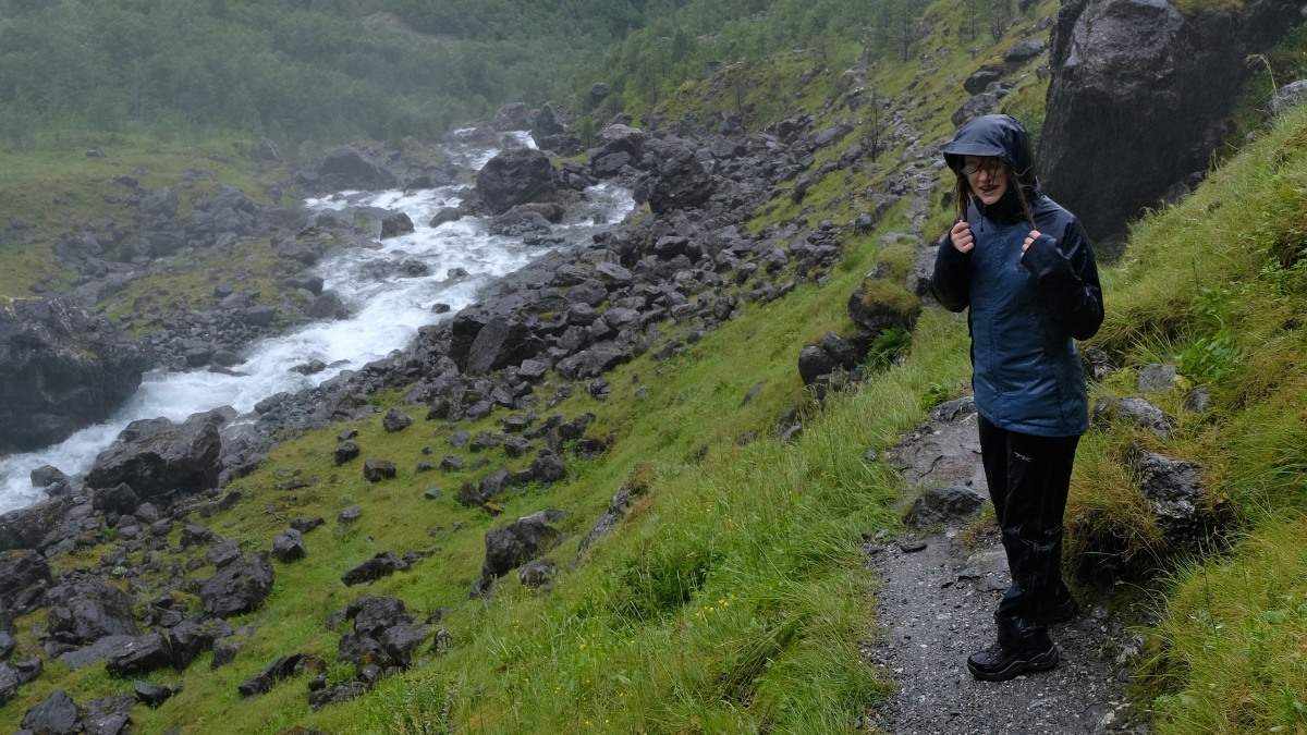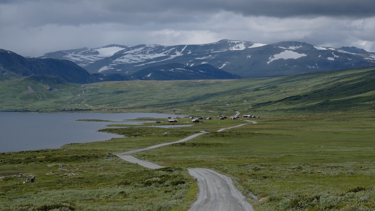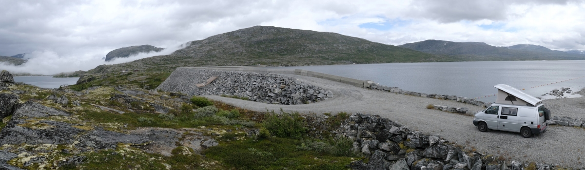 Na het opstaan rijden we effe enkele kilometers naar de openbare wc's van de nabij gelegen Eysteinkyrkja, een uitermate atypisch kerkje dat dateert van 1969. (foto's zie Google, lol). We maken daar een praatje met een Noors jong stel dat al twee weken in de regen stapt en overnacht. Het meisje is al die nattigheid stinkende beu. Als we vragen hoelang ze nog onderweg willen zijn, volgt het antwoord: "nog drie weken".... die Noorse genen, ze zijn niet te stuiten!
