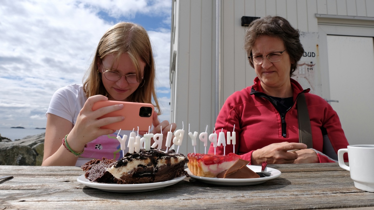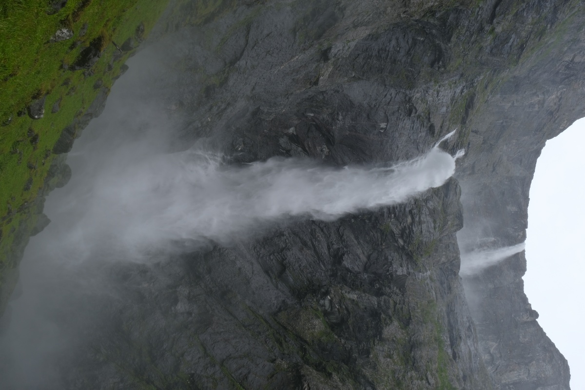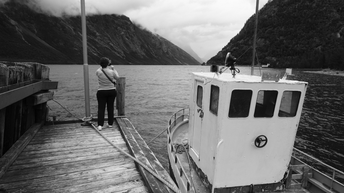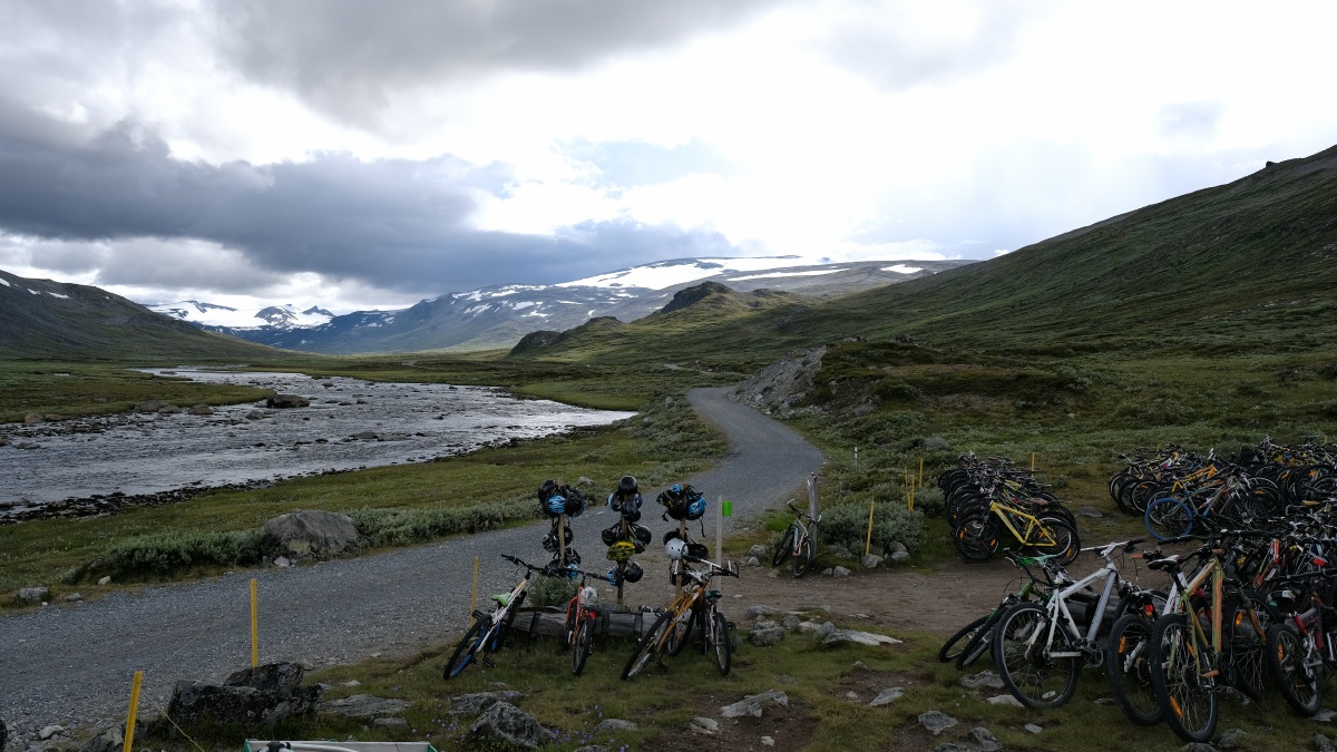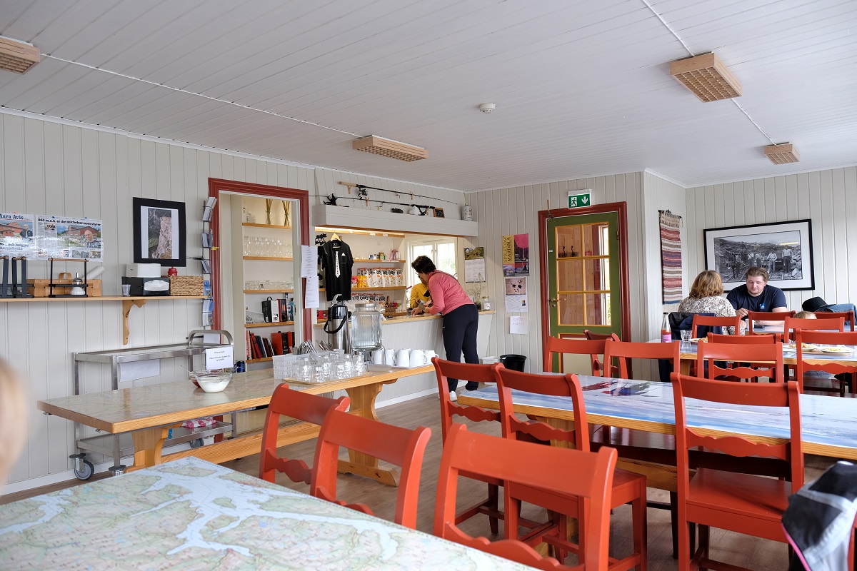 Na het opstaan rijden we effe enkele kilometers naar de openbare wc's van de nabij gelegen Eysteinkyrkja, een uitermate atypisch kerkje dat dateert van 1969. (foto's zie Google, lol). We maken daar een praatje met een Noors jong stel dat al twee weken in de regen stapt en overnacht. Het meisje is al die nattigheid stinkende beu. Als we vragen hoelang ze nog onderweg willen zijn, volgt het antwoord: "nog drie weken".... die Noorse genen, ze zijn niet te stuiten!