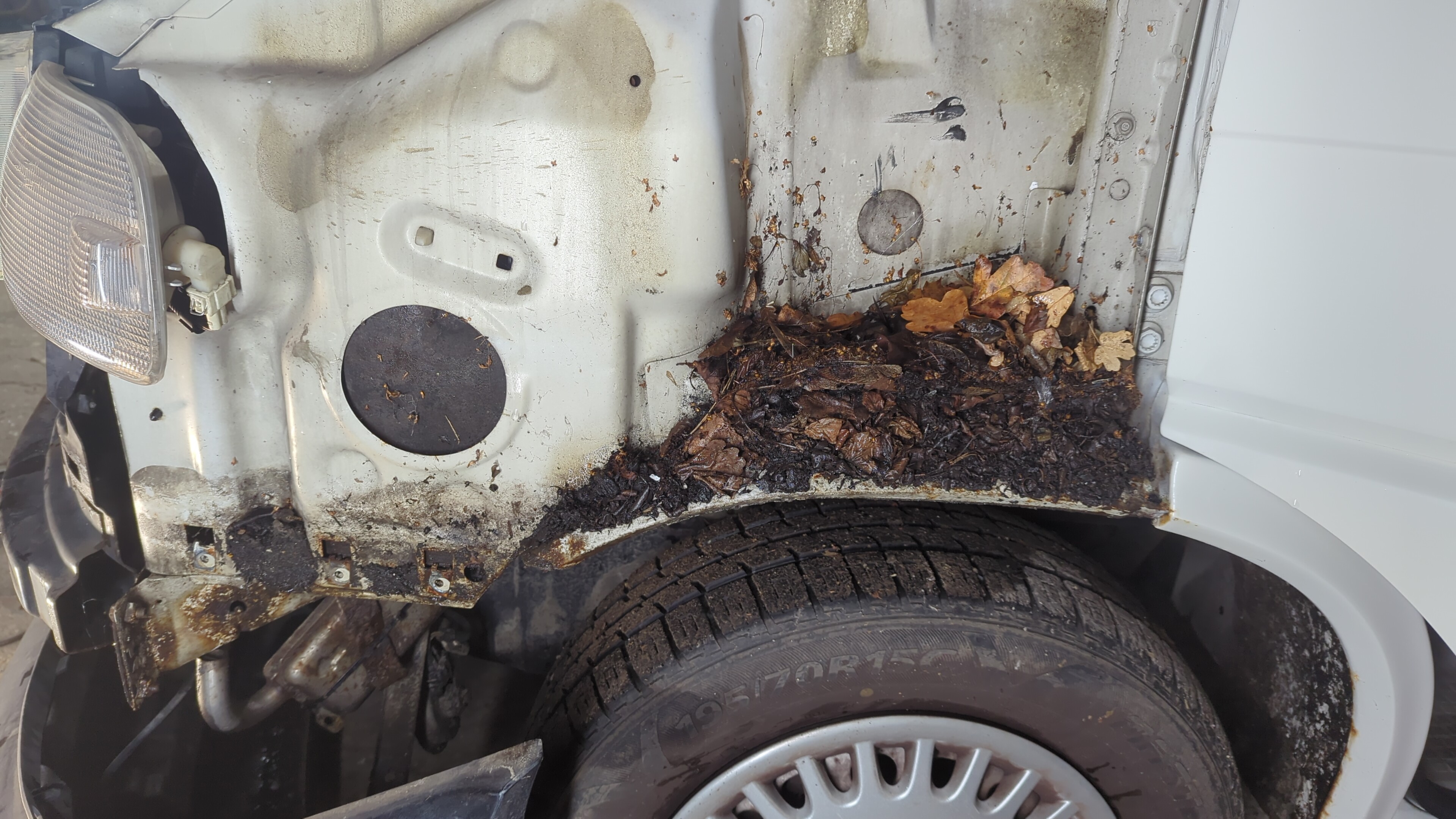 Hiertoe, na wat zoekwerk om de voorkant te demonteren, uiteraard de nodige compost aan getroffen achter de voor-/zijschermen