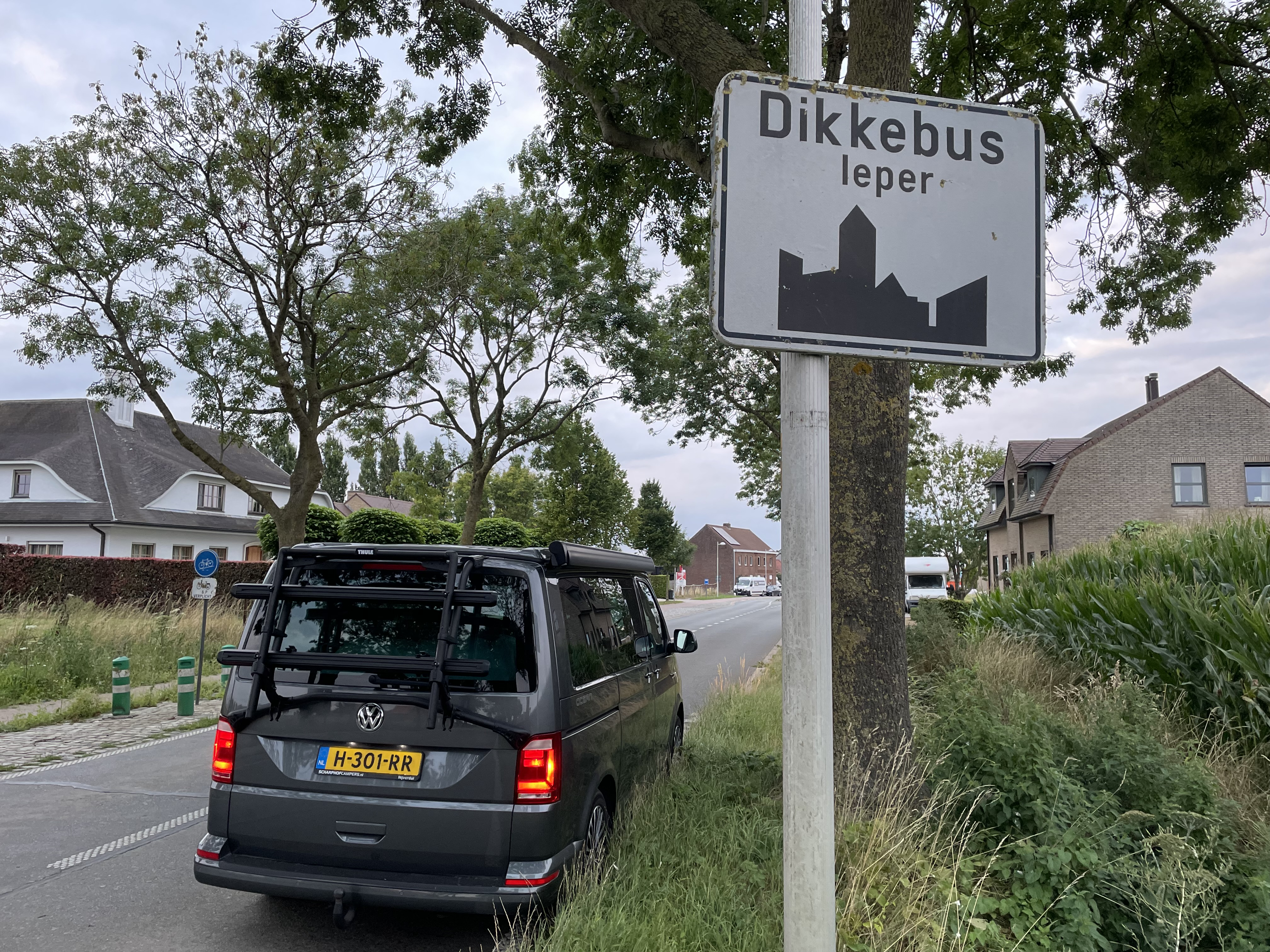 Een bus met een bijzondere kleurcombinatie maar past wel perfect in het landschap.