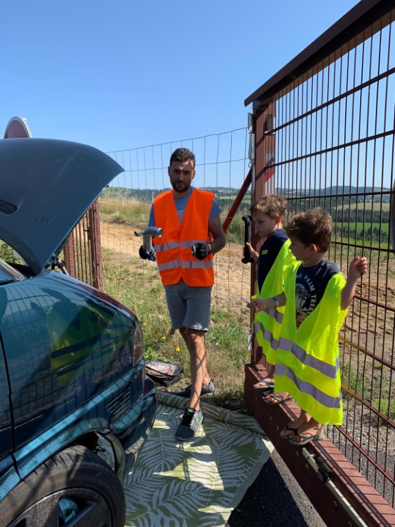 Nee je busje houd van je. Anders had je wel stil gestaan op een 3 wegs snelweg aan de linkerkant. Bij een vangrail, met 6 tonners met 100 km per uur langs flitsend. In de regen met wat onweer. Kids balanceert op 20 cm gras in het midden.