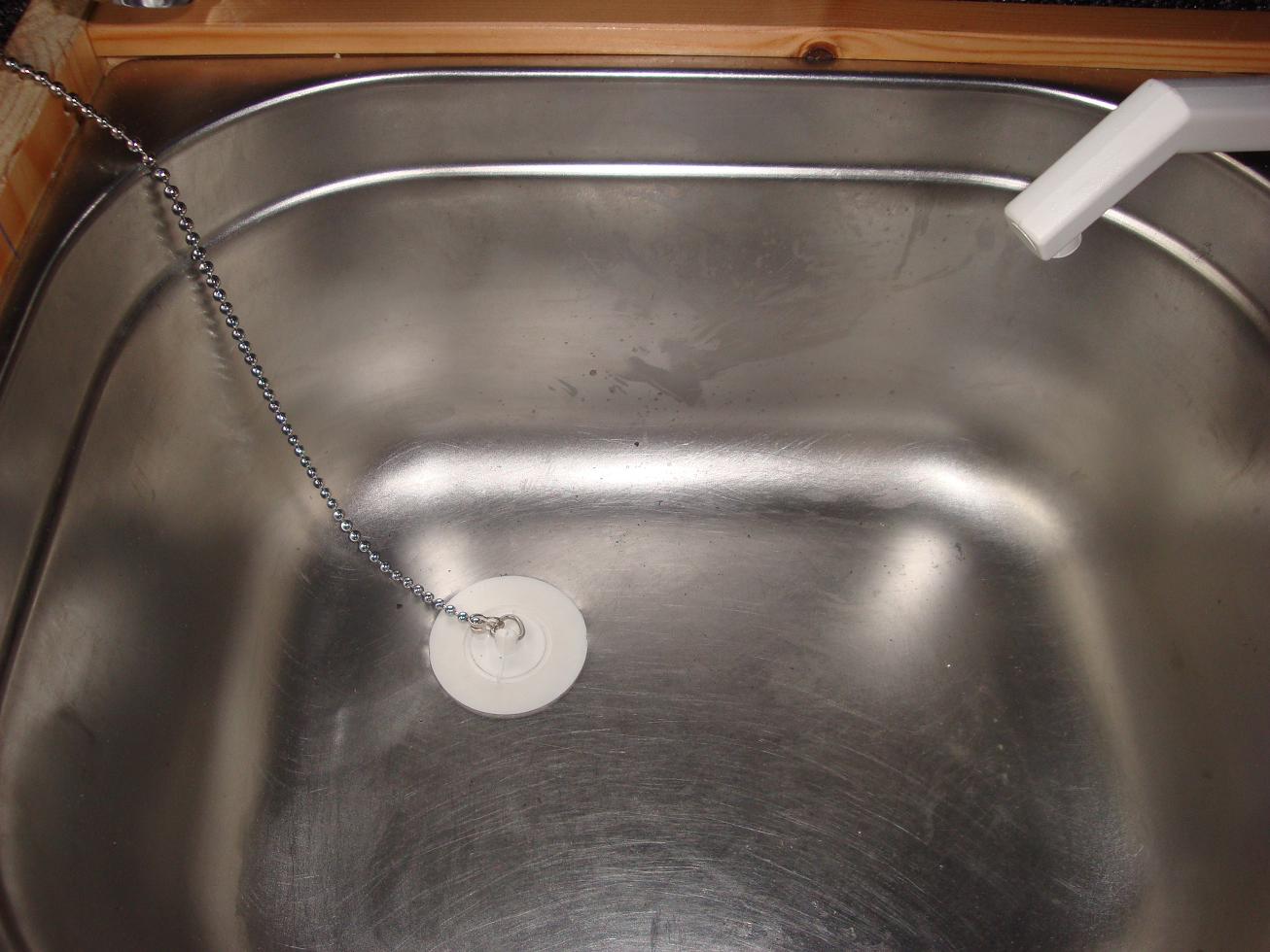 ik moest nog een gat in mijn wasbak maken voor de afvoer...