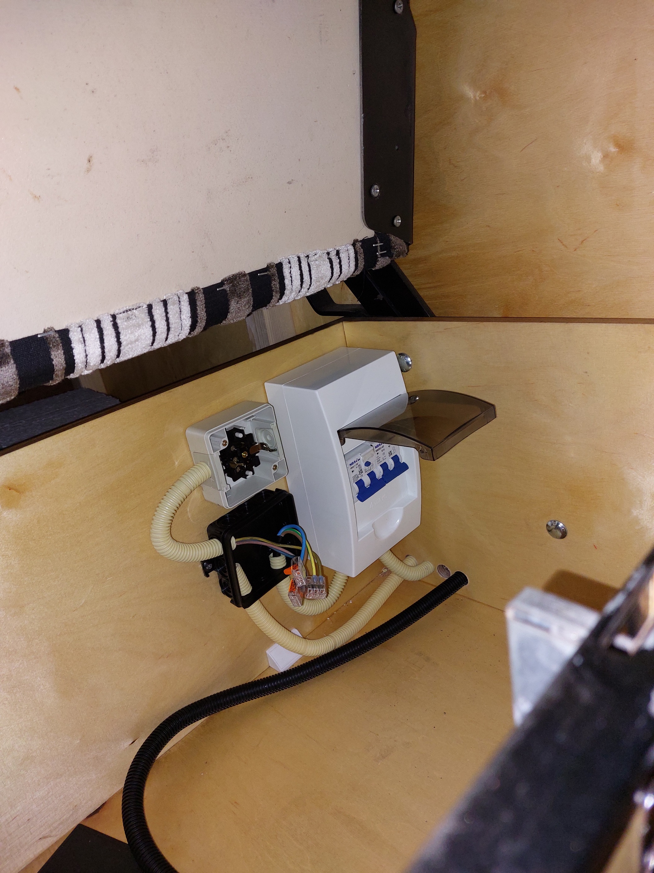 Ook de cee-doos aan de rechterkant aangesloten , er moet nog wel een "deur"stopper gemaakt worden voordat de schuifdeur alles sloopt .