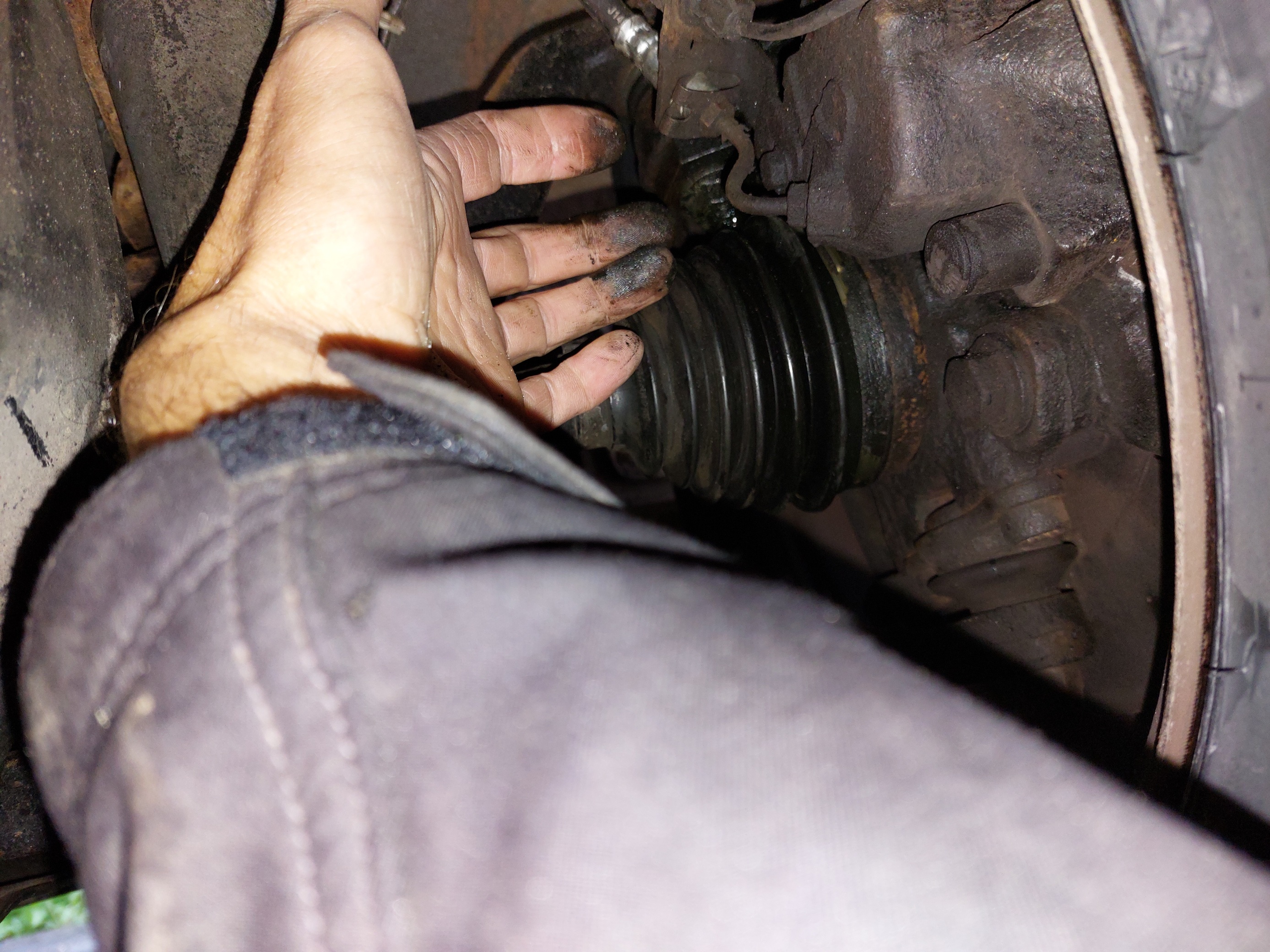Kwam de banden boer nog iets tegen , kapotte aandrijfhoes .