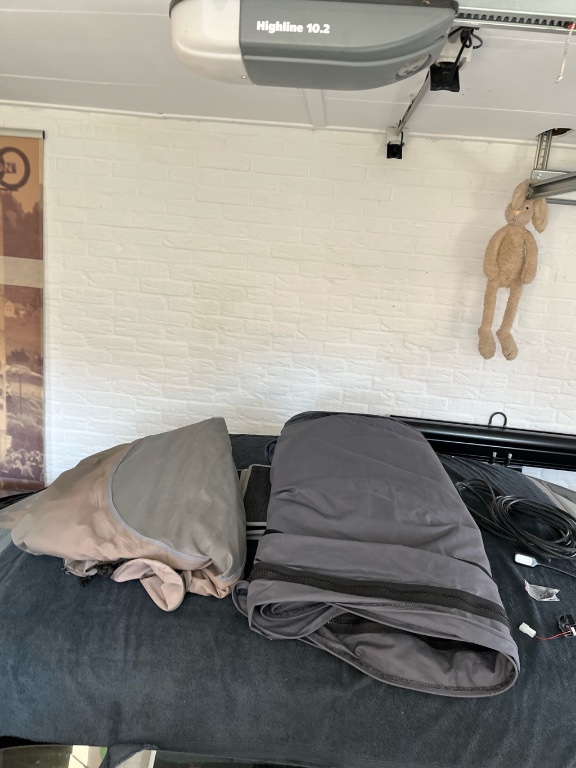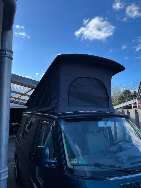 Tentdoek zit erin, was best nog even een klus. Ik had er een doek inzitten van stoff am stuck met 3 ramen. Heeft er dik 8J ingezeten. Op verkleuring na een prima doek welke ik in een andere T4 ga inbouwen welke ik hier heb staan.
