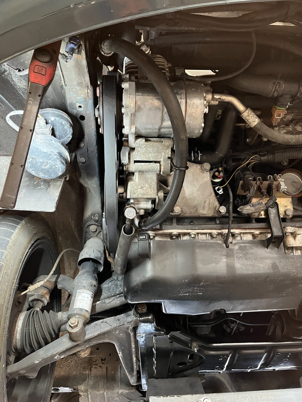 Tevens heb ik deze keer de stuurbekrachtigingspomp vervangen na dik 450.000km vind ik het mooi geweest, ik ga niet wachten tot hij stuk gaat op een onverwachts moment. Meteen een verse multiriem erop gedaan en ook het reservoir vervangen zodat het allemaal weer fris staat.