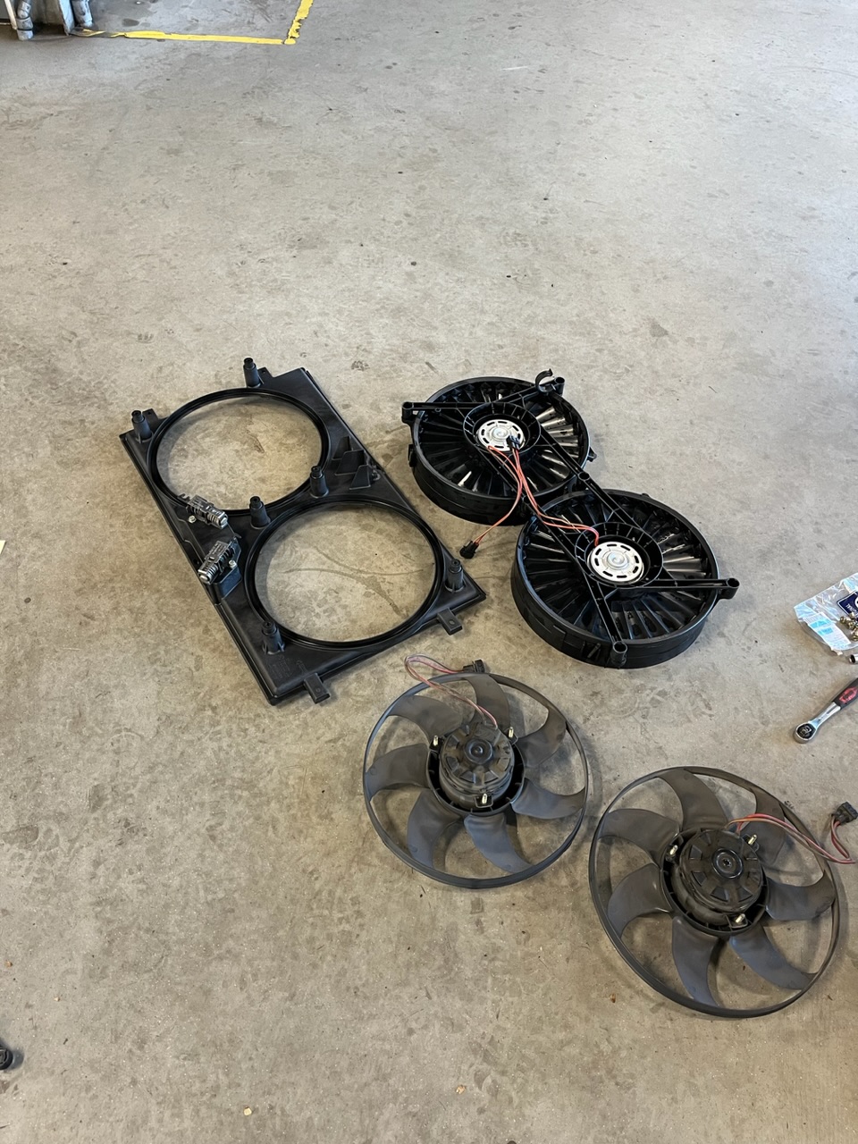 Tevens beide koelvinnen vervangen. Helaas zijn deze niet meer origineel te krijgen. Ik ben voor Meyle koelvinnen gegaan. Als ik heel eerlijk ben, ze zien er net even wat fragieler uit, de motoren zijn wat dunner als je de behuizing bekijkt en de draden net even wat dunner. Ik ga ze proberen of ik ermee kan leven. Alles wijst erop dat het mindere kwaliteit is maar je moet wat op een gegeven moment.