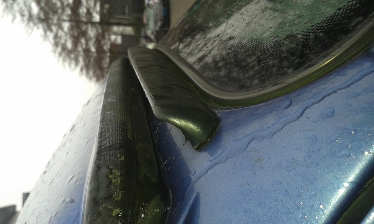 De spoiler is aan de onderkant 15 mm breed en zit (bij mij althans) direct tegen de rand van de voorruit aan (als je op de foto klikt draait hij vanzelf weer rechtop).RoelandZ schreef: 03 jan 2019, 21:10Dat idee had ik in de eerste instantie ook. Maar aan de achterkant kan het dak niet veel verder naar achter ivm de hoeken, die steken anders over de achterand van het dak. Ik heb het net ff gemeten, aan de achterkant in het midden zit het rubber 5,3cm van de rand af. Voor heb ik 2,7 cm tussen het rubber en eind van het dak. De scharnieren kan ik nog +/- 6mm naar voor of achter plaatsen.brugseb schreef: 03 jan 2019, 20:30Hangt dus van model af - onze was er na goed 2 weken (model '96-'99), wel super kwaliteit bij Stof am Stuck.Ik zou ook meteen een nieuwe tent er op zetten,