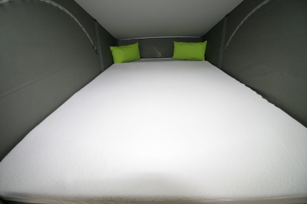 Natuurlijk blijft het een camper met geringe hoogte voor bodem en matras, maar wij slapen er erg goed op. Een wereld van verschil met de originele lattenbodem!