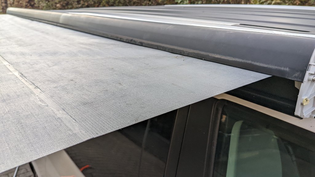 Blijkbaar is dit een veelvoorkomend probleem bij de eerste serie originele VW luifels, waarbij het doek uit 2 aan elkaar verlijmde delen bestaat. Later is het design aangepast en is het doek uit 1 stuk gemaakt.