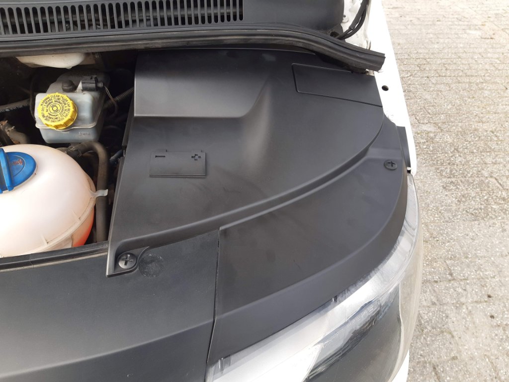 Verder op het Duitse forum nog een plakstrip van stevig kunstof gekocht die in de nis van de onderste roller van de zijdeur past. Het wieltje loopt dan niet meer over het metaal maar over de strip.