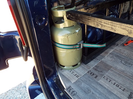 Ook heb ik de gasfles in de vloer laten verzinken, zodat die ook stevig staat.