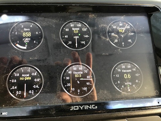 Ik moet mij nog meer verdiepen in wat Torque kan laten zien maar er is een basis scherm met een aantal metertjes, o.a. vacuum. Bij stationair draaien is de waarde 0.6, bij maximum gas (nu slechts 2500 toeren) is deze 2.1. Zijn dat normale waardes?