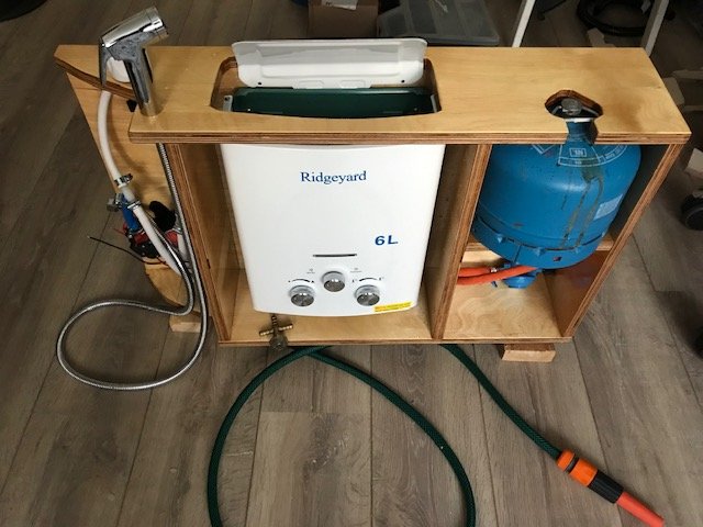 Dit project gaat dus nog wel een paar week duren. In het slechtste geval gaat de boiler eruit. Het is een ding om in de boom te hangen. Ik heb hem gekocht met idee dat je hem alleen gebruikt met achterklep open. En het is een heel mooi compact dingetje. Maar als het teveel herrie maakt en stoom produceert of in de fik vliegt dan is het meer van weetikniet.nl :gekte.
