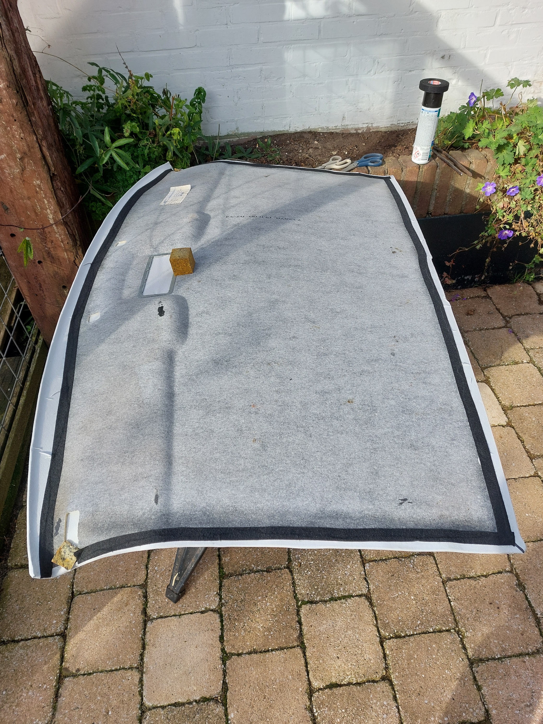 Bij een stoffenwinkel in enschede nieuwe stof gehaald en deze er vanmiddag op gelijmt.