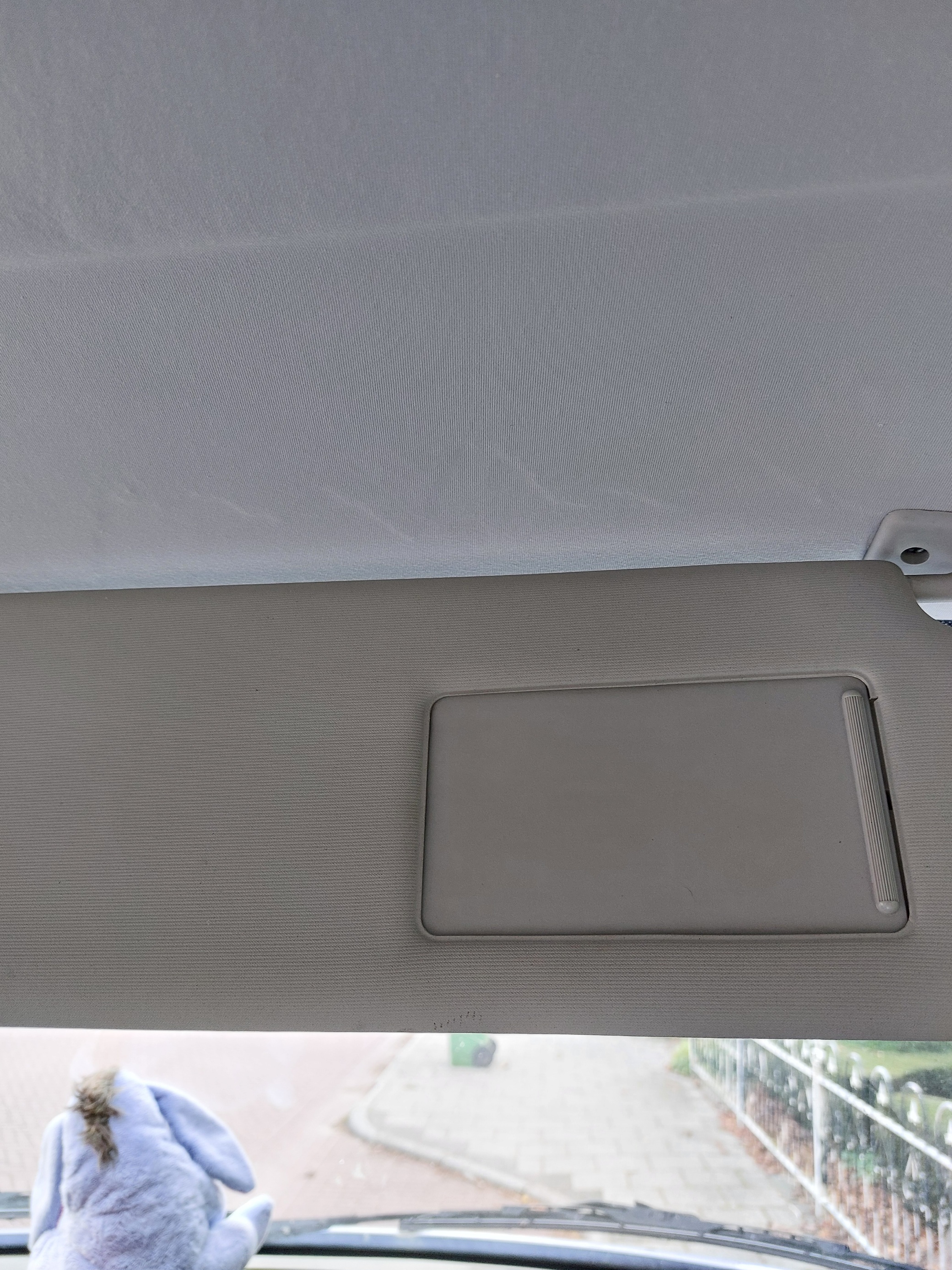 Beschadeging karton zit gelukkig achter een zonneklep .