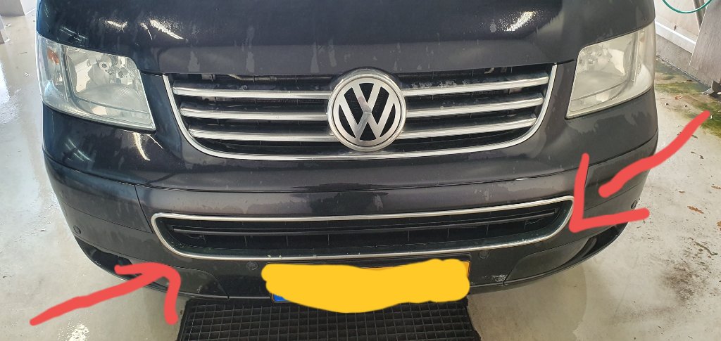 Heb zelf Rvs overzetstrips op mijn bestaande Multivan grill gemonteerd (kosten 69,00 euro afgehaald in Rotterdam) zie snelkoppeling.