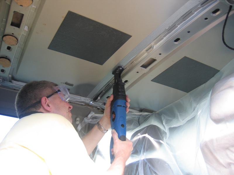 Eerst isolatie met de rails erin ...precies pas en heb daarbij de zitslaapbank gebruikt om druk uit te oefenen op de Sikaflex 221 waar de rails mee verlijmd zit nachtje laten drogen en zo vast als een kluis.... en gelijk...maatvast voor de zitslaapbank