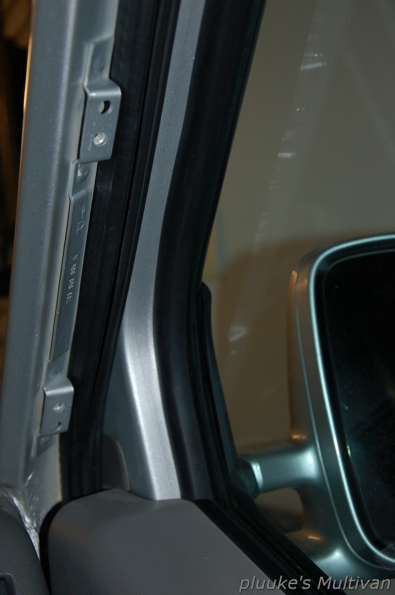Dan kijken of je blindklinkmoeren lunt plaatsen in de linker A stijl en gaten in de bekleding maken.