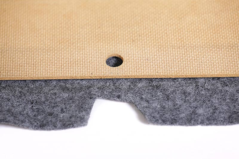 Het vilt wordt op maat geknipt. Dat betekent dat het vilt aan alle 4 zijden ongeveer 3 cm uitsteekt. Op de foto staan nog uitsparingen voor de gaten. Dit blijkt niet nodig te zijn.
