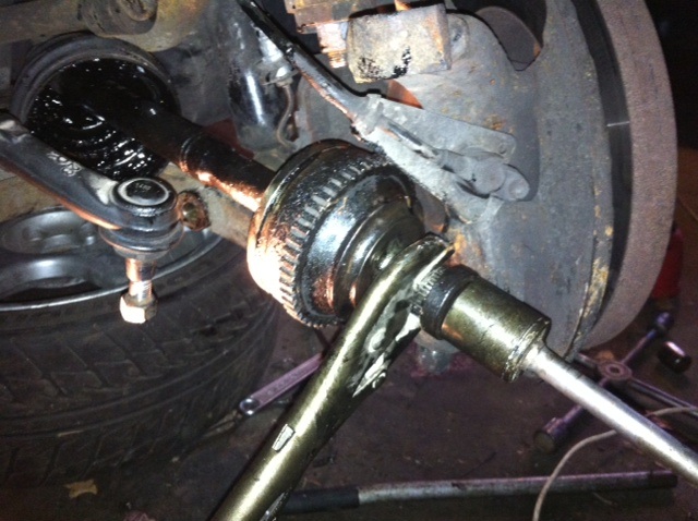 Vandaag een nieuwe homokineet gezet. Zelfs met beperkt materiaal en ghetto style op een krik is het goed te doen. Belangrijkste was eigenlijk dat je de centrale bout als "trekker" gebruikt. Zelfs fuseekogels hoeven niet los.