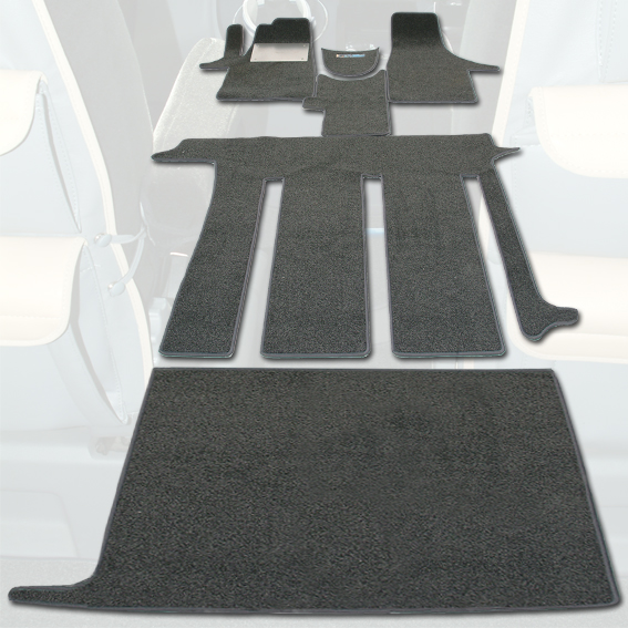 We bestelden alleen de mat voor het woongedeelte (we hadden al matten in de cabine), maar toen nam Ulli Ditmar van california-camping contact met ons op. Hij had nog één complete set liggen, wilde ons best alleen de bestelde woonruimtemat leveren, maar dan moest hij nieuwe stof bestellen voor nieuwe mattensets, en de praktijk leert dat de kleur altijd iets afwijkt zodat hij met een 'miskleur' incomplete set bleef zitten, die hij moeilijk kon verkopen. Dus met een mooie aanbieding hebben we toen een hele set gekocht :lach .