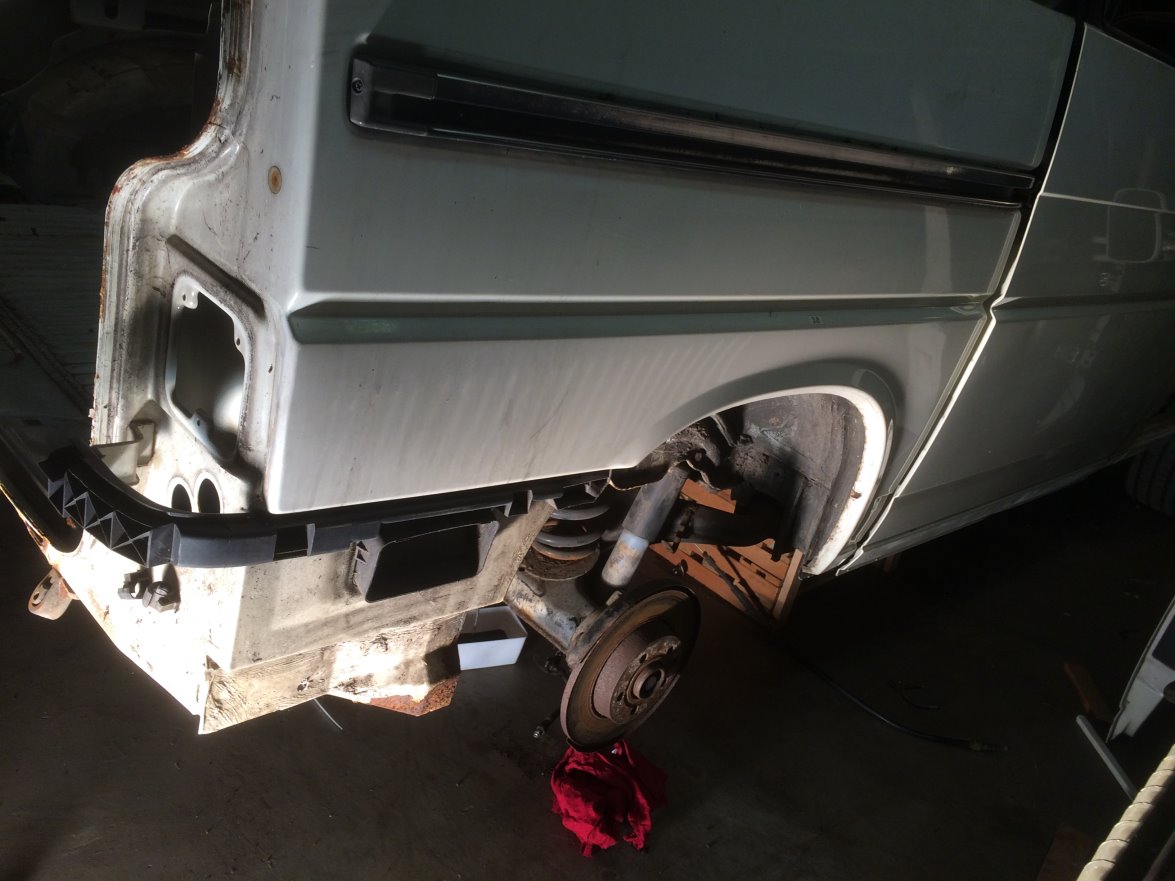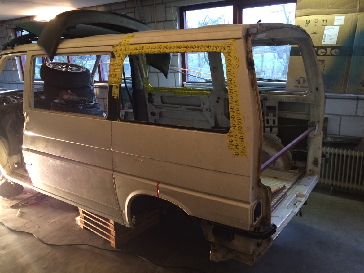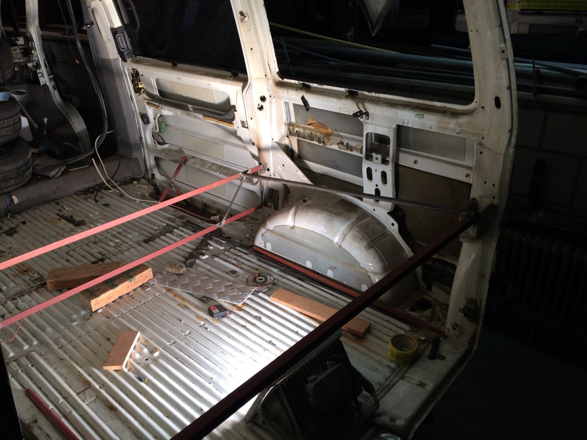 Hier is een kunststof body-kit gebruikt. Ik heb er naar gezocht, maar niet kunnen vinden helaas. Dan wordt het maar knutselen. Zoals in het voorstel stukje gemeld ben ik een keer bij een T2 Doka ratlook wezen kijken. Helaas werd dat niks, maar ik was wel verkocht!!